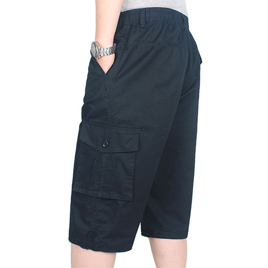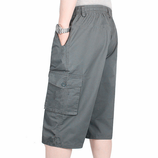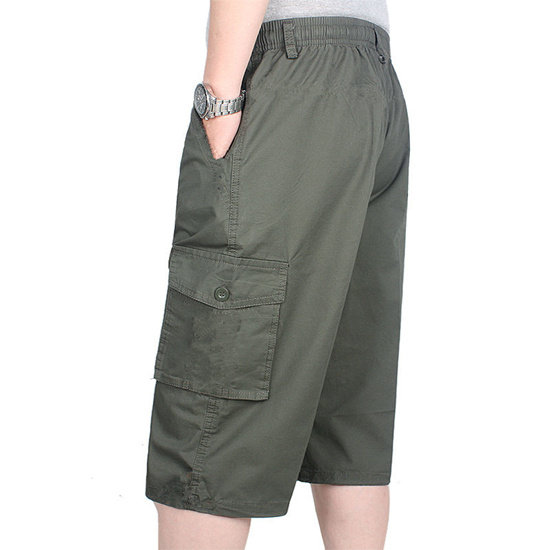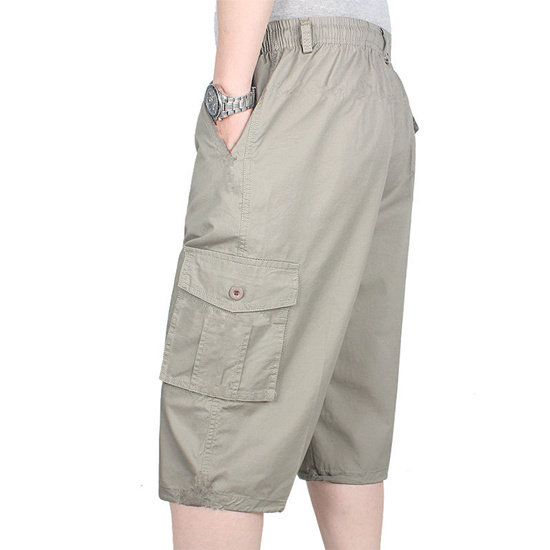 Middle-aged and elderly men's shorts cropped pants dad wear summer thin section loose large size casual cotton trousers