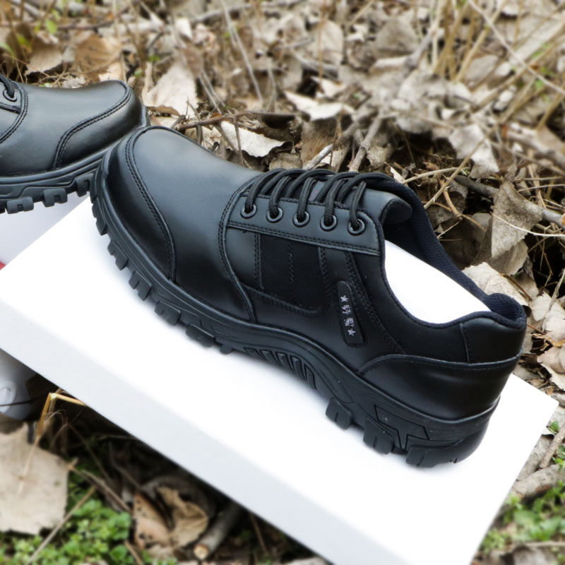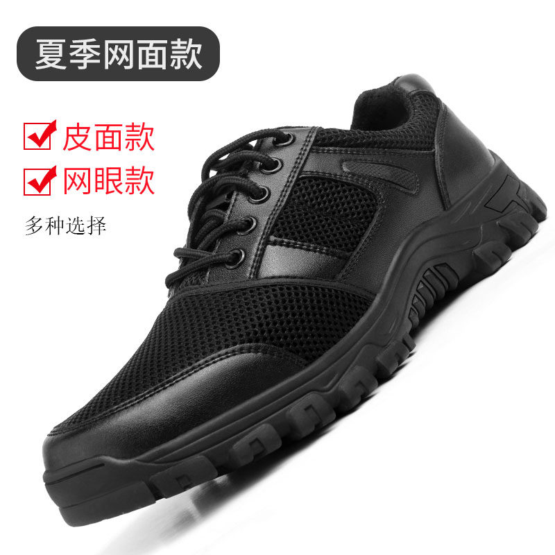 Summer leather combat training shoes men low-gang sports shoes security work patrol shoes wear black running shoes breathable