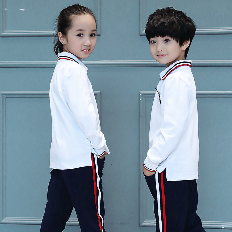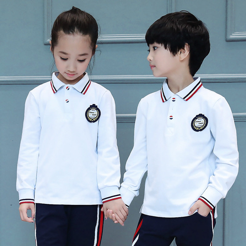 Large size children's long-sleeved cotton T-shirt kindergarten clothing spring and autumn middle and small children's school uniform white POLO shirt parent-child wear