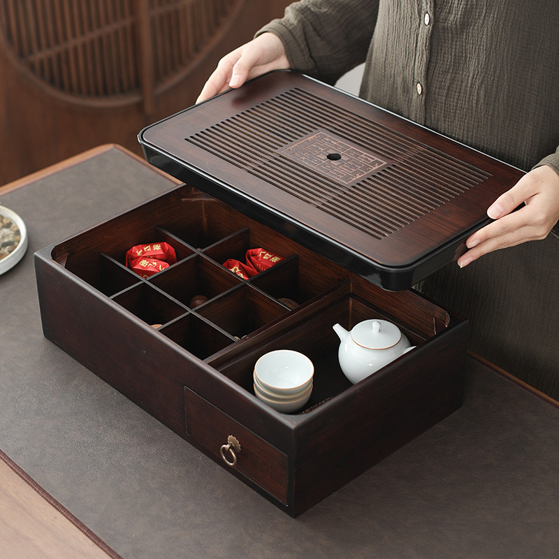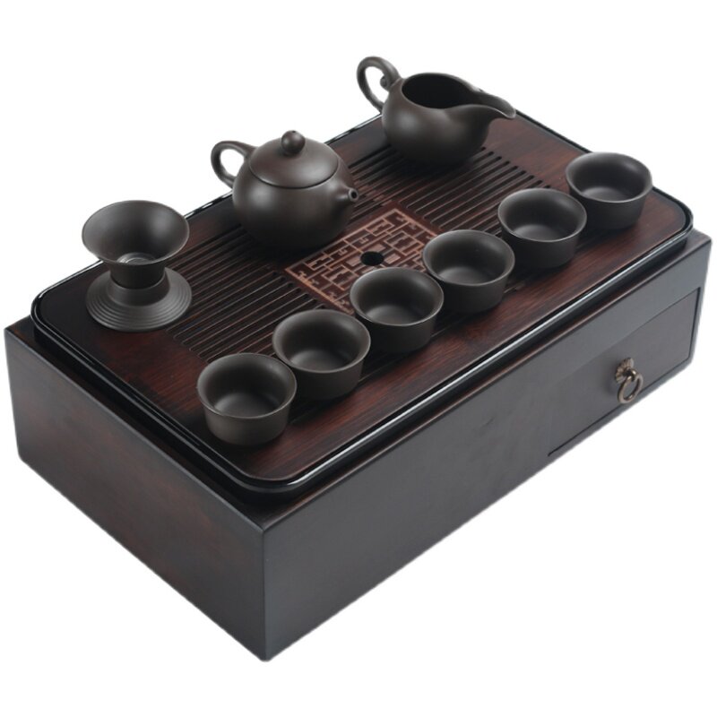 Luxury Japanese white porcelain purple sand kung fu tea set tea cup set multifunctional Tea Tray storage box tea tray home tea tray