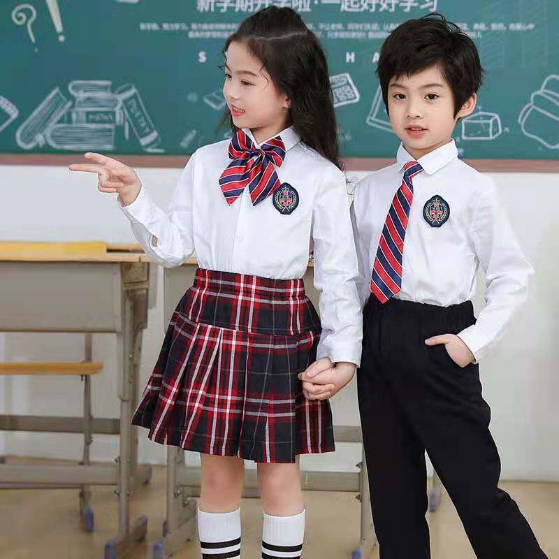 Single navy blue skirt Single checkered skirt Single white shirt Single pullover vest Shirt Navy blue skirt Shirt Checkered skirt Shirt Pants Khaki pants Khaki skirt Single Navy blue