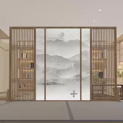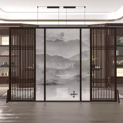 New Chinese solid wood screen Living room compartment Hotel office Villa entrance entrance hollow brake decorative seat screen