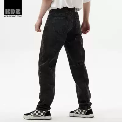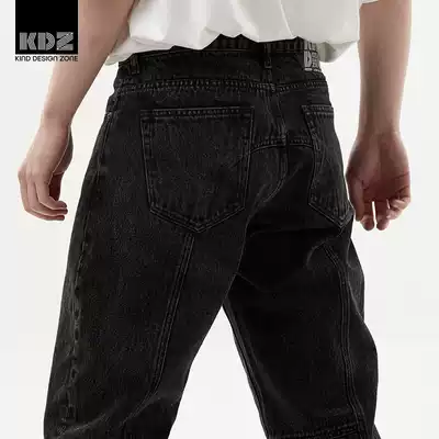 KDZ three-dimensional cutting stitching denim ankle-length pants men's clothing 2021 summer New straight tube small straight foot trend youth