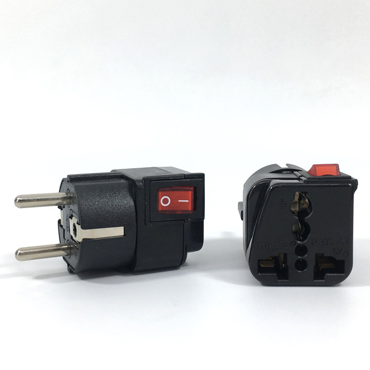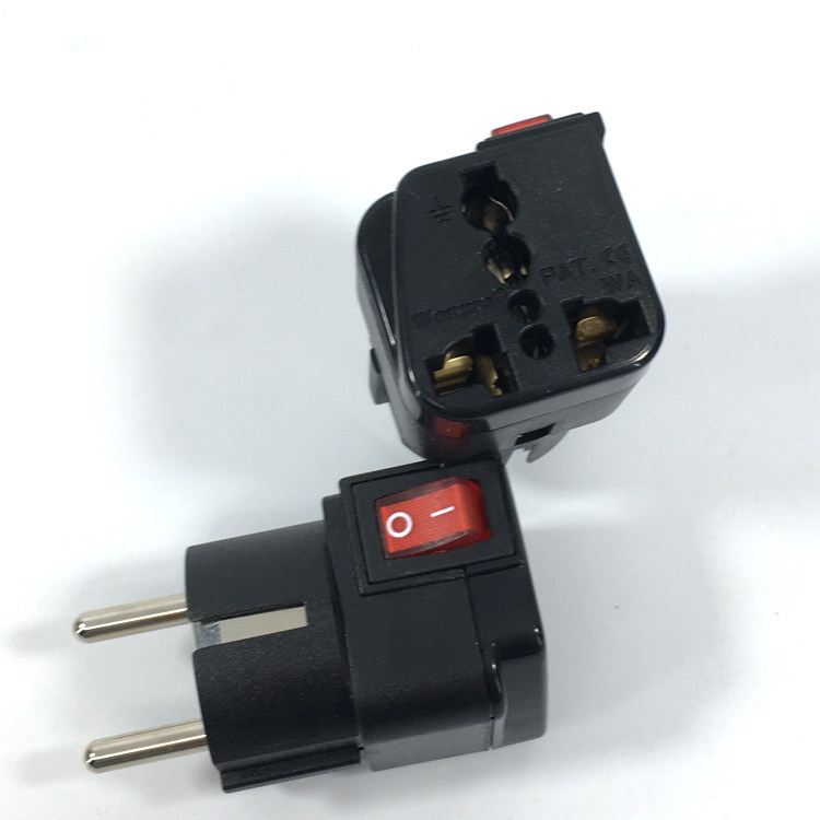 16A European standard double round conversion plug with switch universal hole socket for Russia and France dedicated WSA-9