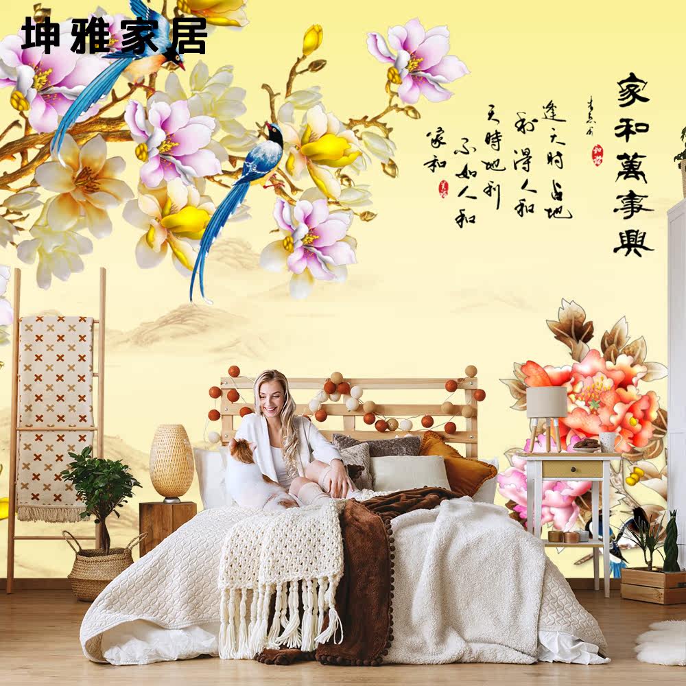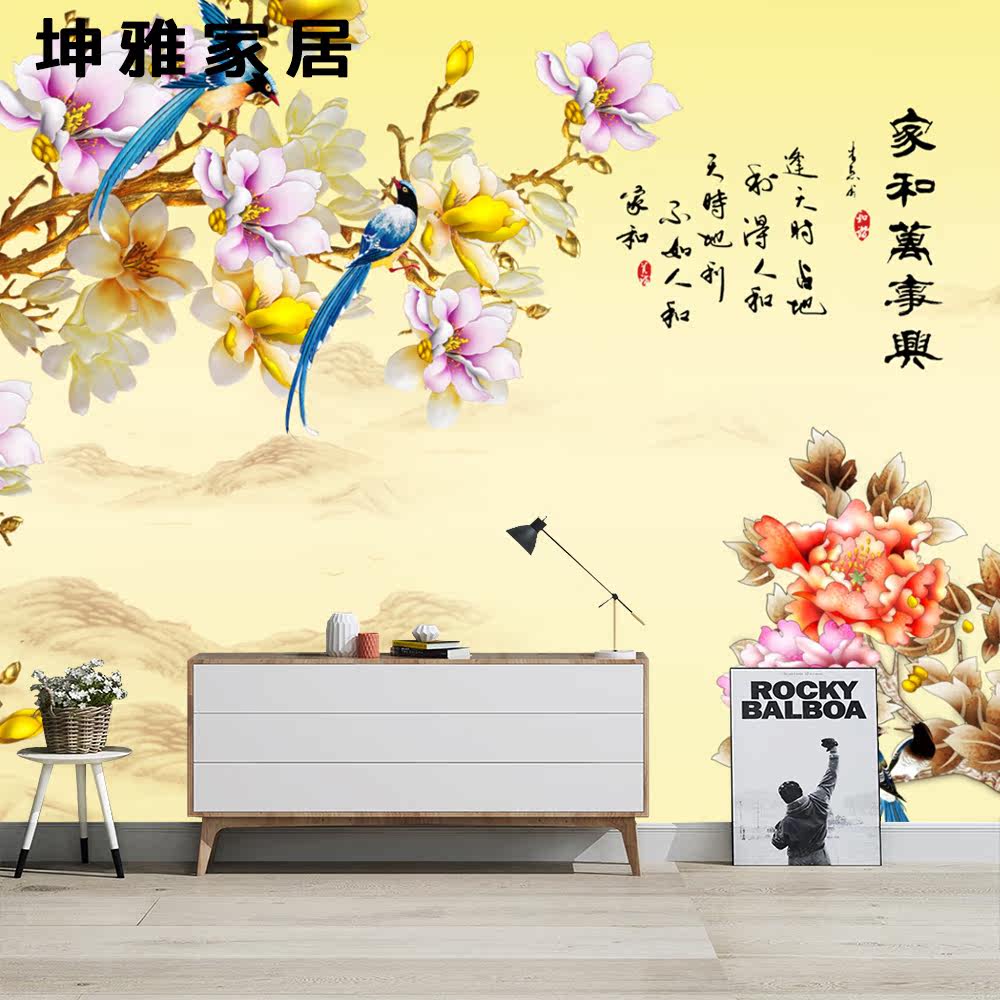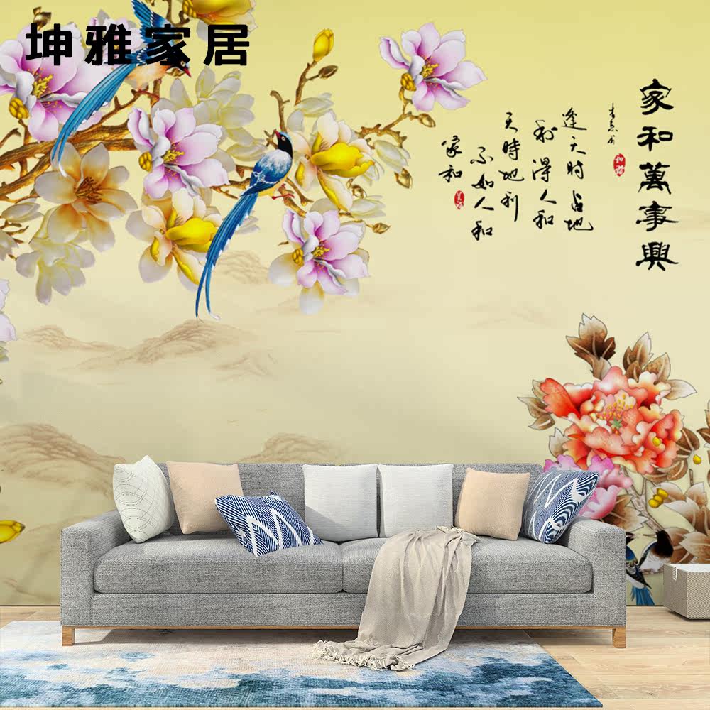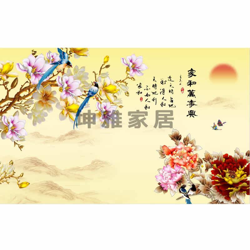 Bamboo and wood fiber integrated wall plate Chinese retro orchid flowerbird TV background wall panel decorative panel wall board