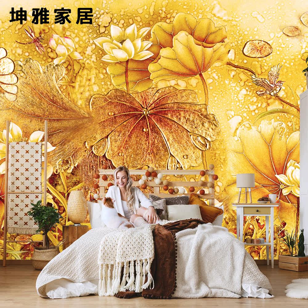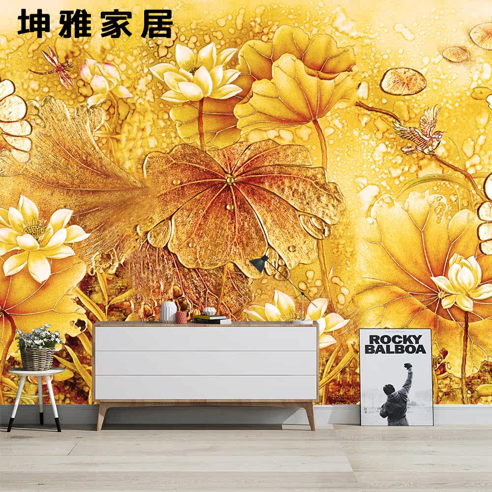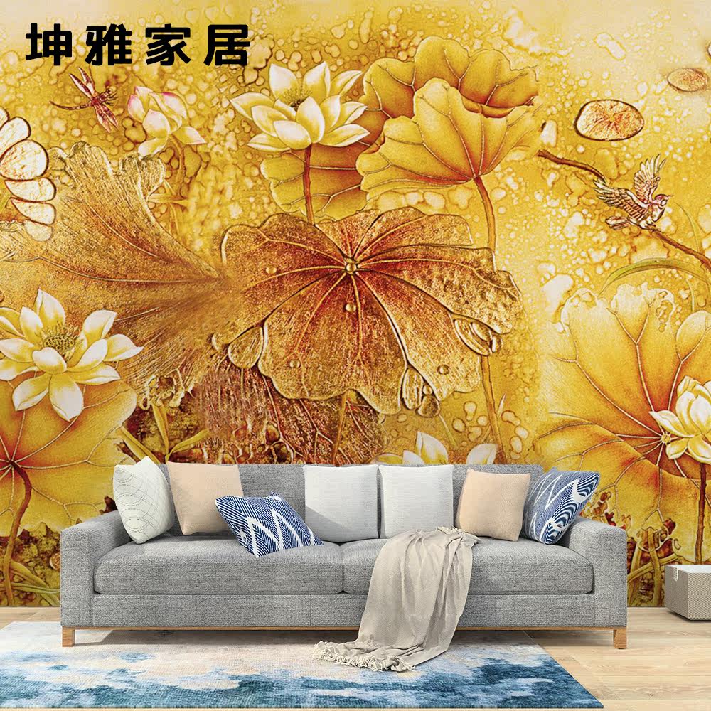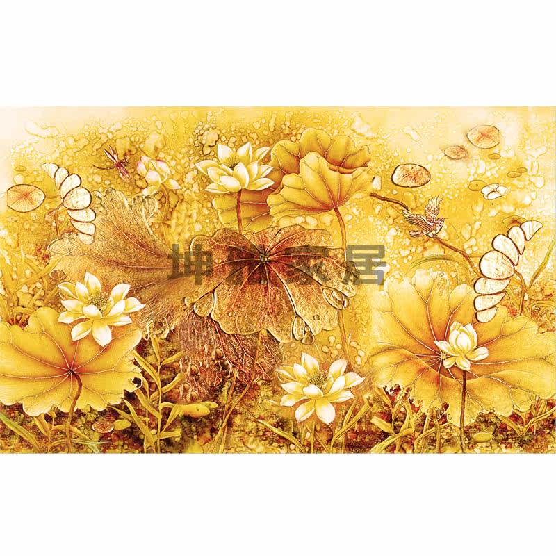 Bamboo and wood fiber integrated wall panel Chinese retro lotus lotus leaf TV background wall panel living room decorative panel wall panel