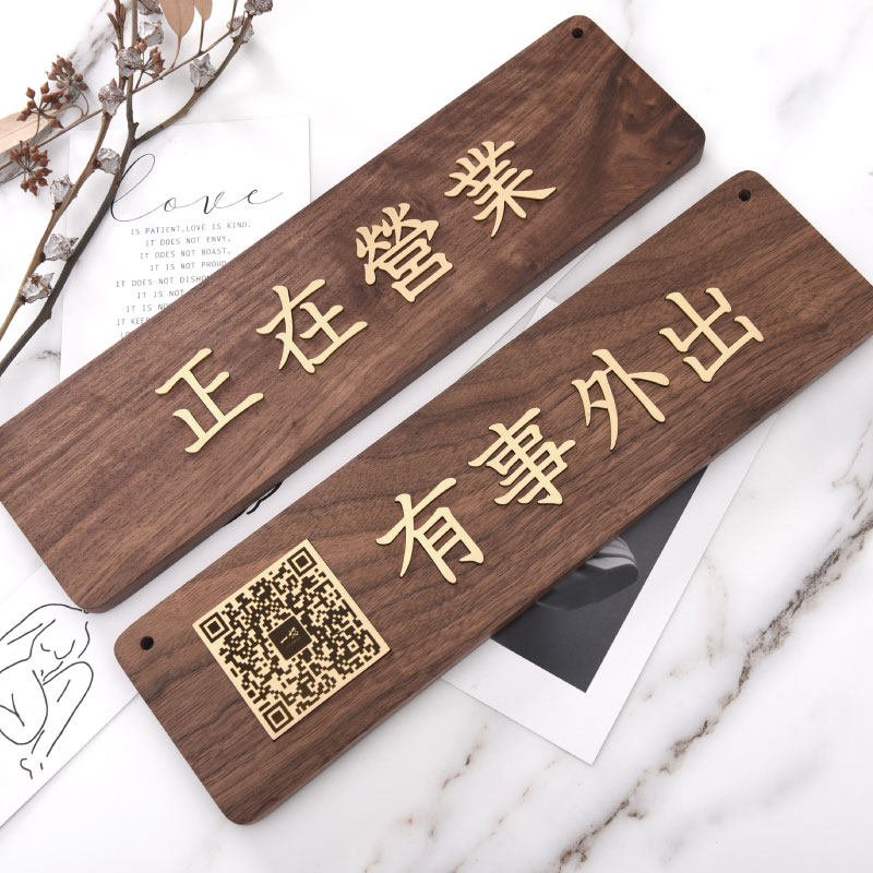 Listed in business, out of business, shop telephone hanging on the door, is open, welcome to individual creative