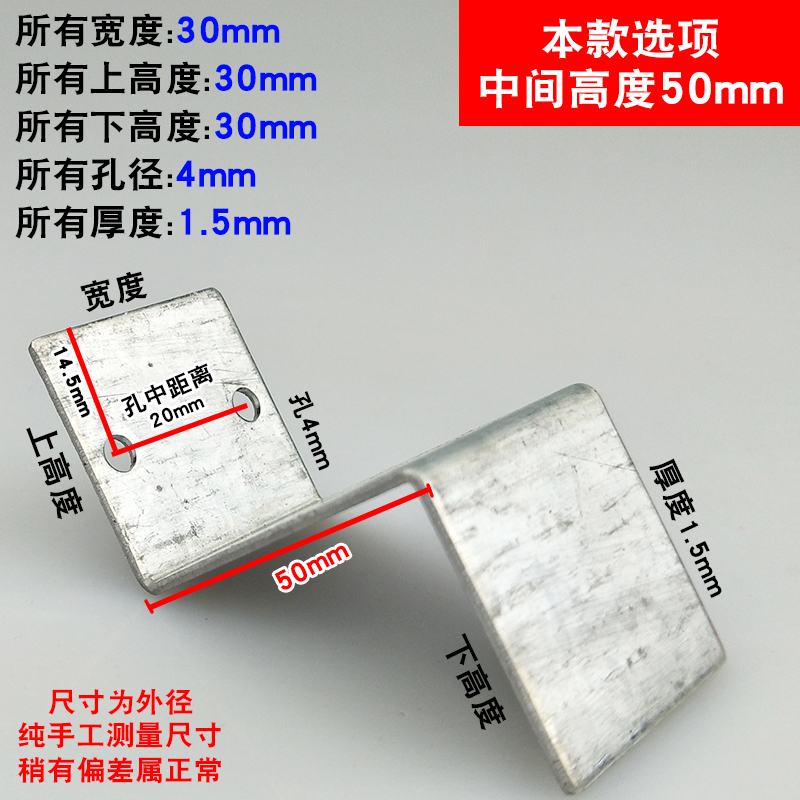 Cold galvanized 50 width-30 bow height (10 pcs) Cold galvanized 30-50 bow height big hole (10 pcs) Cold galvanized 25*32 (10 pcs) 201 stainless steel 25*3