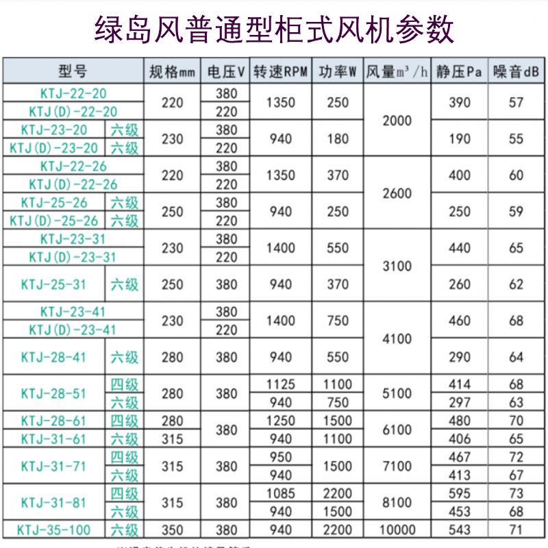 KTJ-22-20-4S energy-saving type 2000 air volumeKTJ-22-26-4S energy-saving type 2600 air volumeKTJ-23-30 energy-saving type 3000 air volume