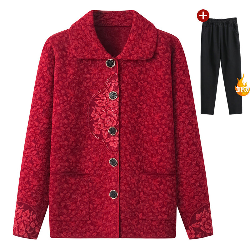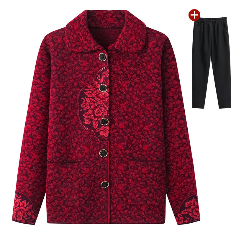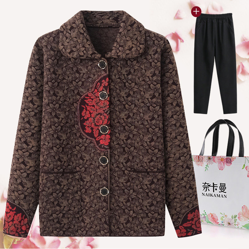 Elderly spring and autumn female grandmother knitwear lapel coat cardigan sweater old lady winter coat mother clothes
