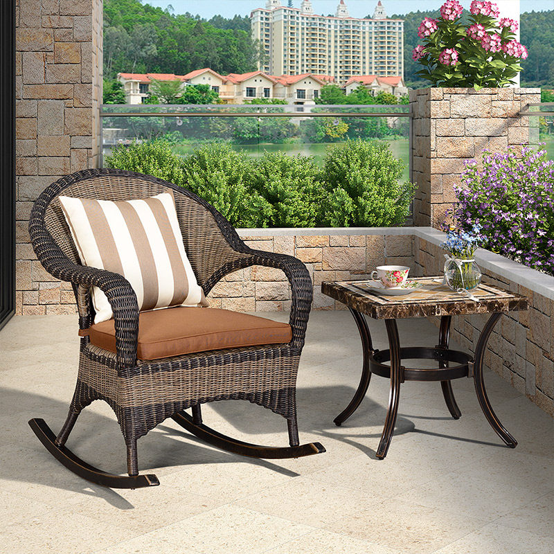 Madison Aluminum Alloy Rattan Rocking Chair (Free Cushion Rocking Chair (Free Cushion Pillow) 50*50 Cast Aluminum Porcelain Black Rocking Chair - Free Cushion and Pillow Black Rocking Chair 1 Tea Table (45*45cm