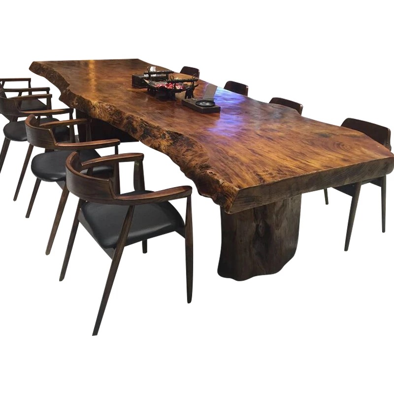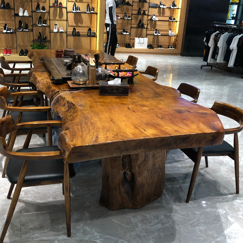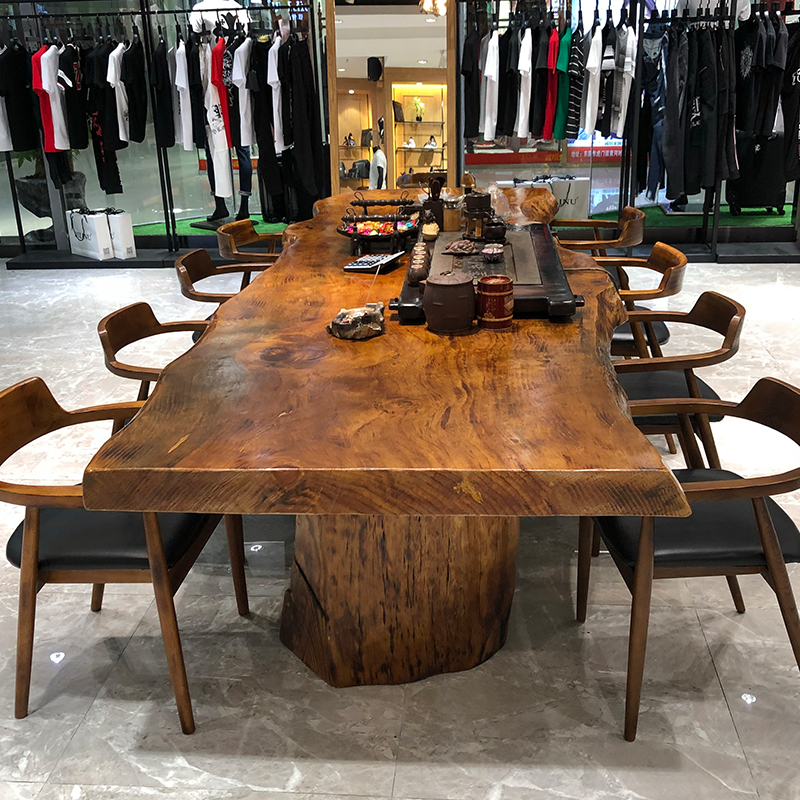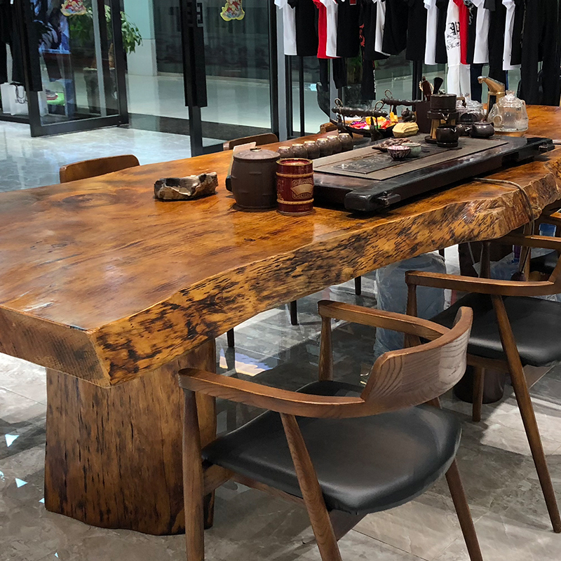 Log large plank solid wood tea table, boss table, computer desk, workbench, new Chinese style desk, tea table, table and chair combination
