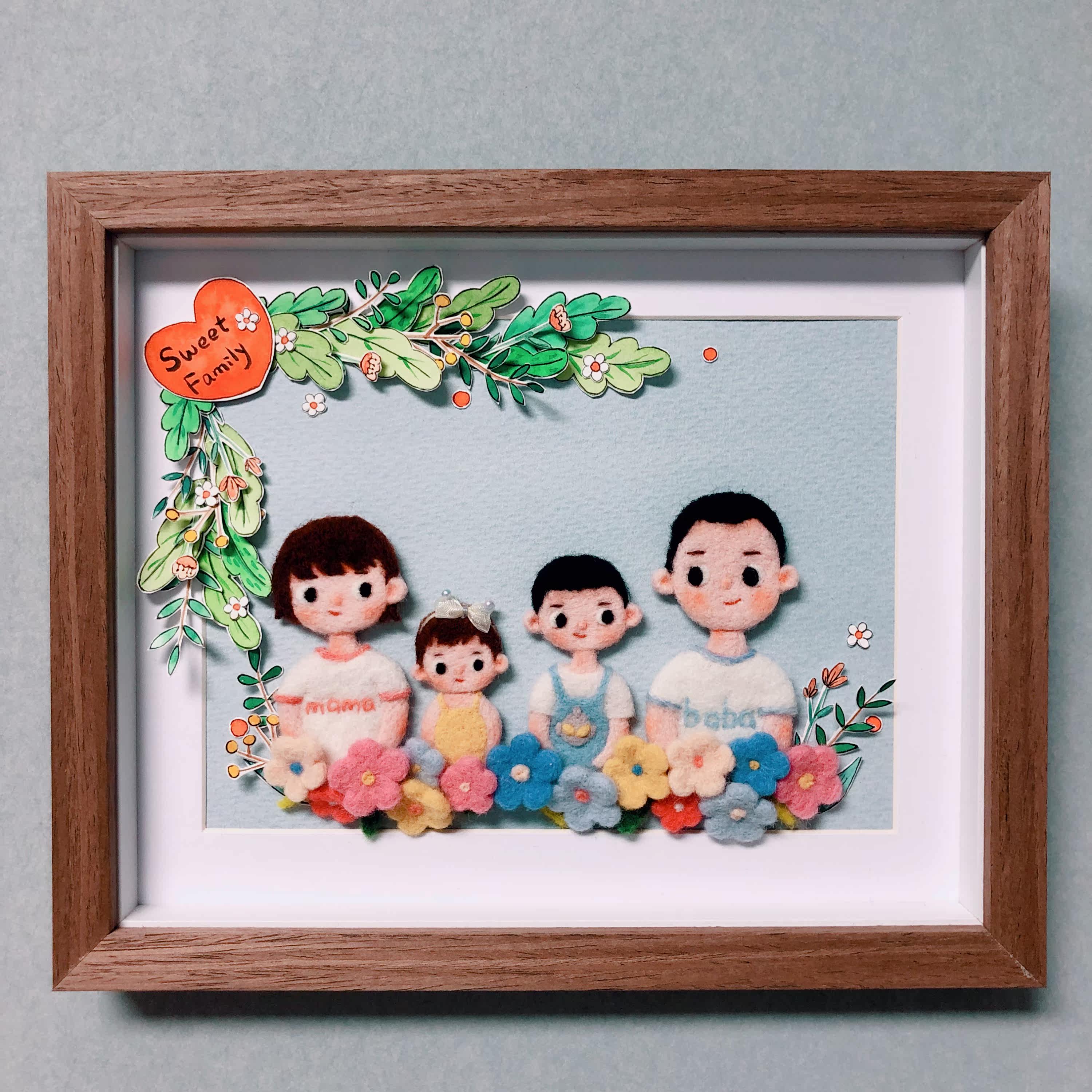 Portrait family portrait photo frame custom wool felt original design wedding gift birthday gift anniversary