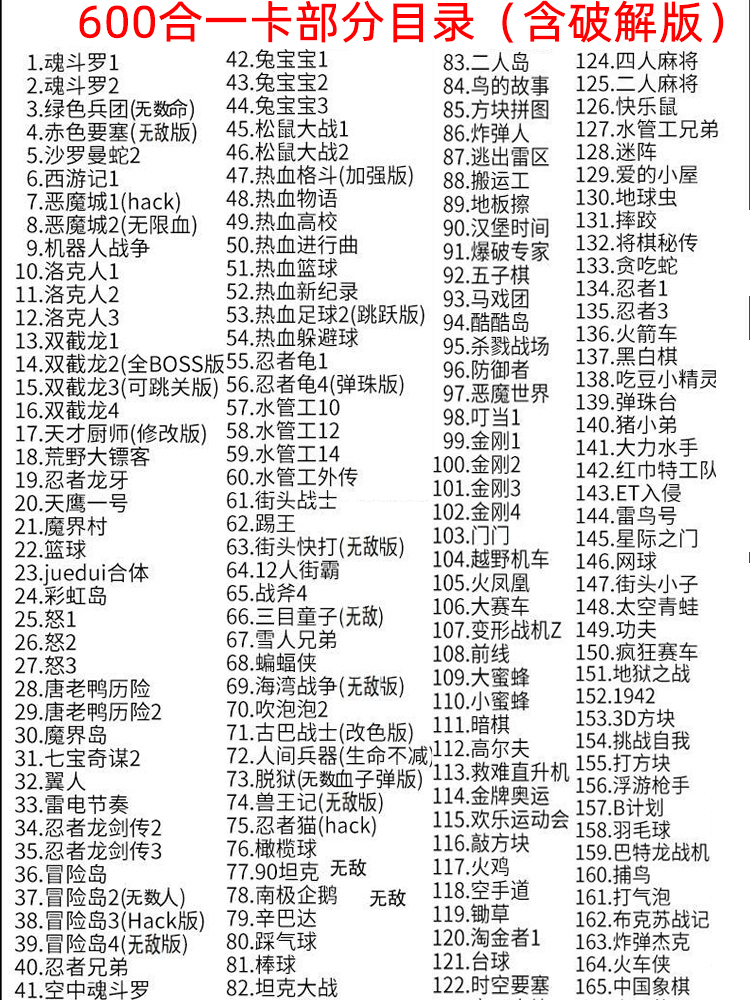 One 39-in-one game card One 89-in-one game card One 114-in-one game card A complete set of game consoles A complete set of game consoles 132-in-one cards A complete set of game consoles 400-in-one cards