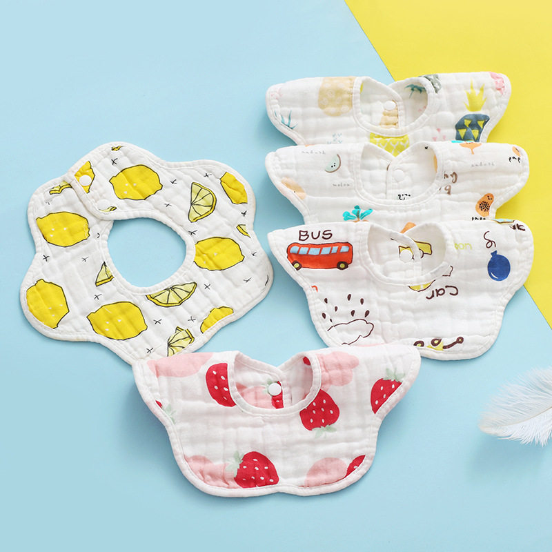 Newborn Baby Full Cotton Bubble yarn petal surrounding pocket pure cotton rotatable anti-spitting milk baby saliva towel child bib