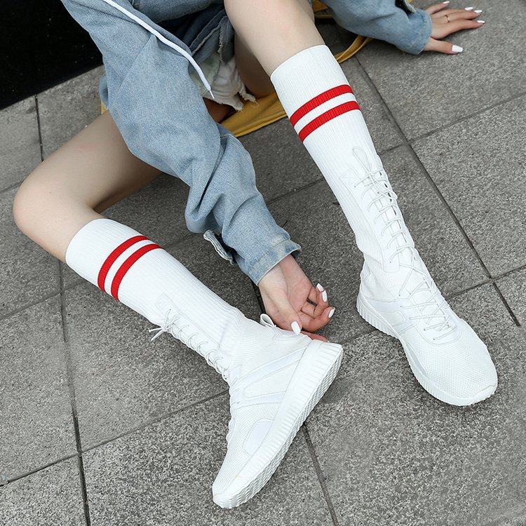 Long boots women but knee knight boots high-barrel knitted socks shoes flat-soled white thin elastic socks boots spring