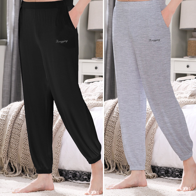 2 sets of middle-aged and elderly men's summer thin section casual solid color ice silk pajama pants home trousers modal loose