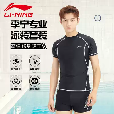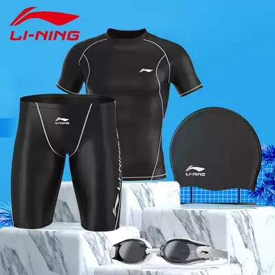 Li Ning swimsuit men's flat corner swimming pants men's anti-embarrassing quick-drying surf suit hot spring full body set equipment five-point pants