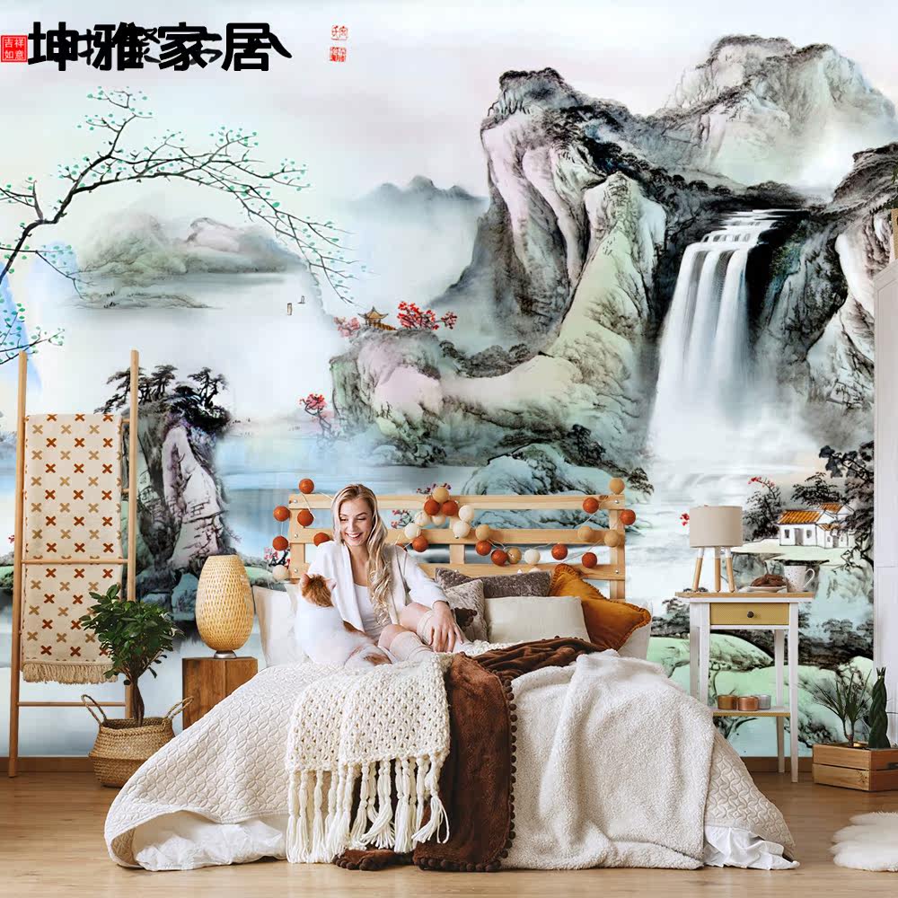 Bamboo wood fiber integrated wall panel Chinese style retro landscape TV background wall panel living room decorative panel wall panel