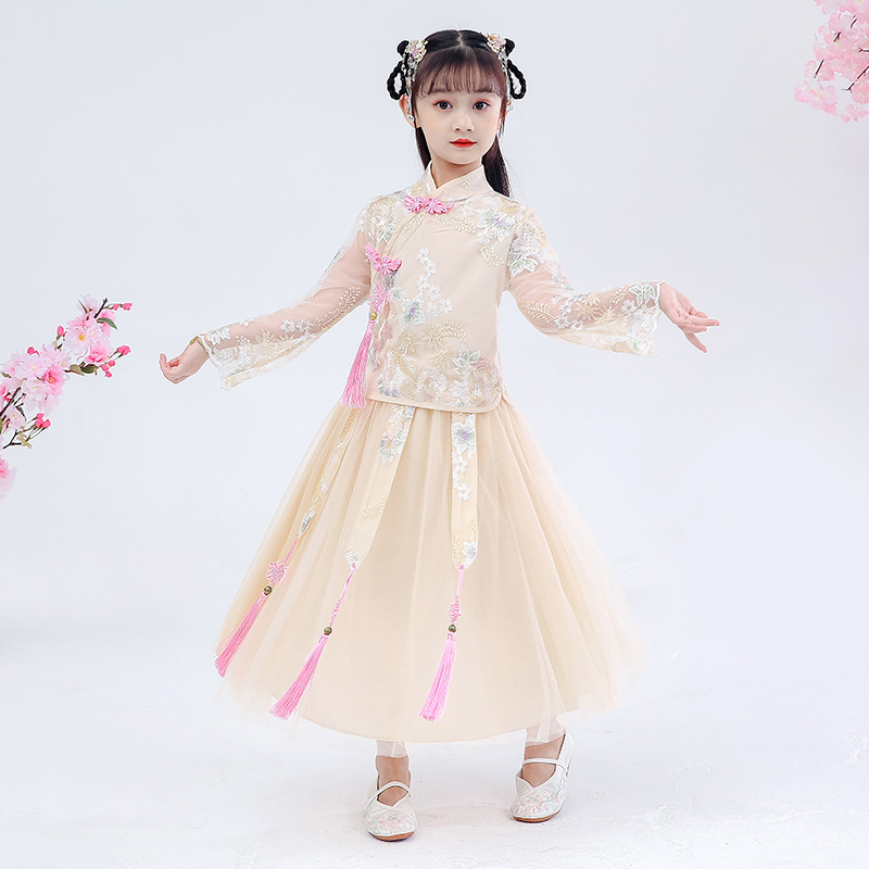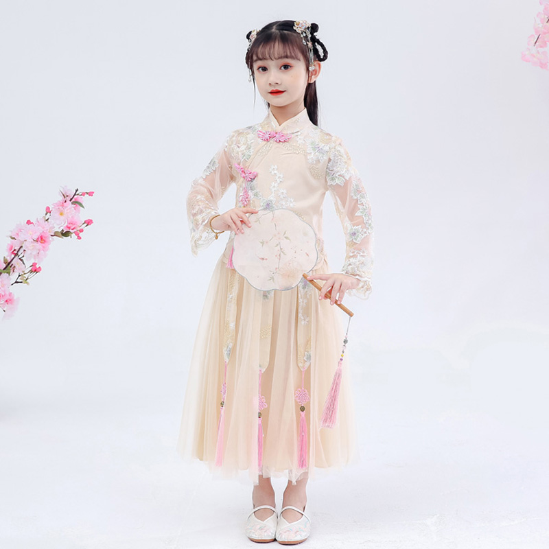 Hanfu girl Spring loaded with Chinese wind long sleeves Two sets of Tang Pink Gufeng Children Ancient Dress Super Fairy Spring Costume Super Fairy