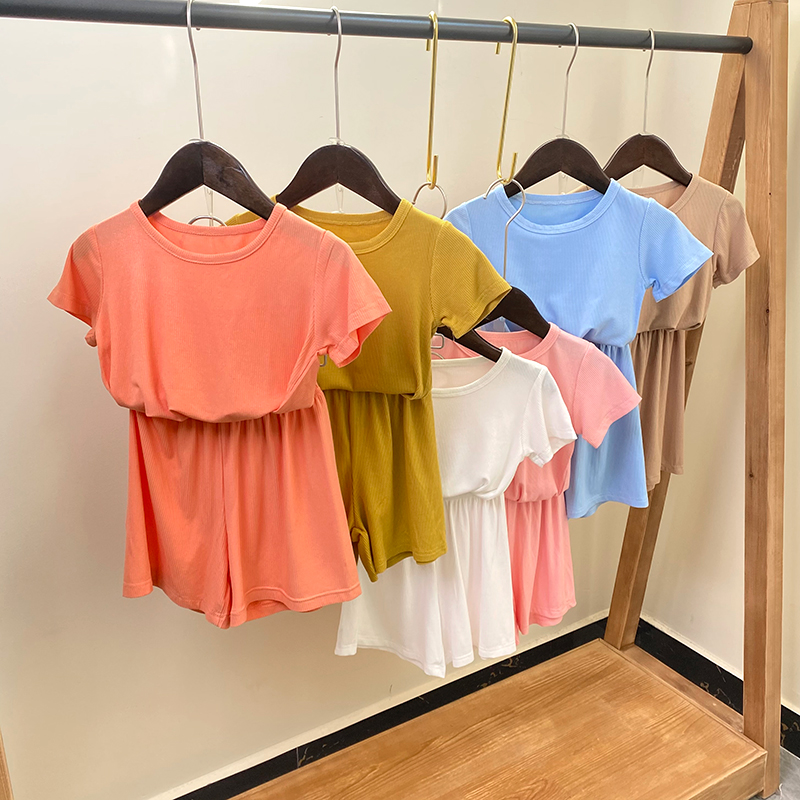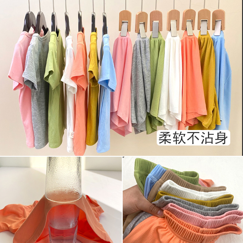 Children's suit summer short sleeve shorts mask suit for men and women baby elastic home clothes pajamas set air conditioning suit