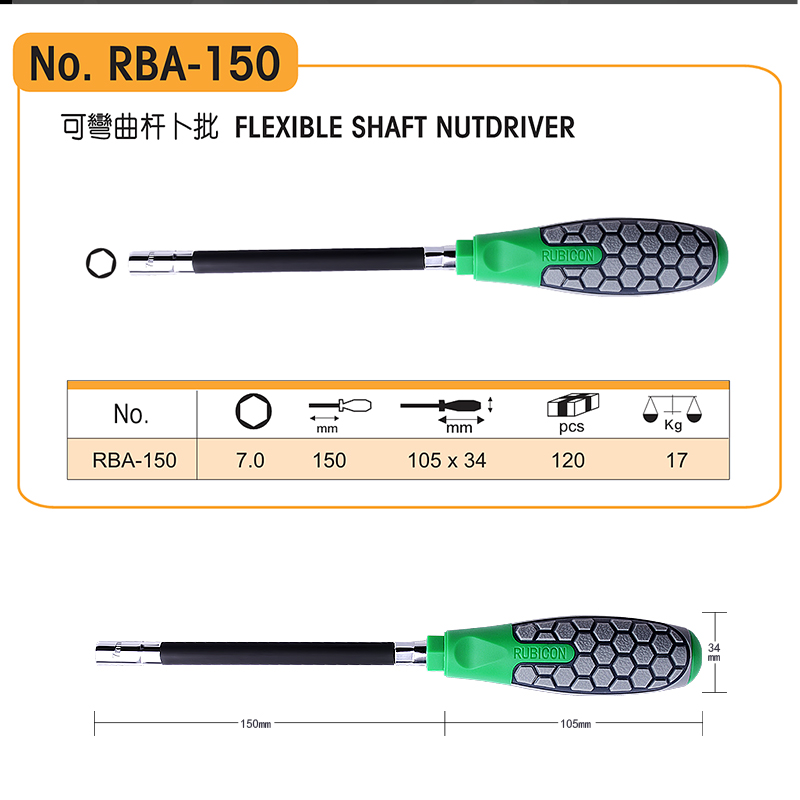 Imported Japanese RUBICON Robin Hood RBA-150 bendable rod batch 7mm sleeve screwdriver throat hoop batch