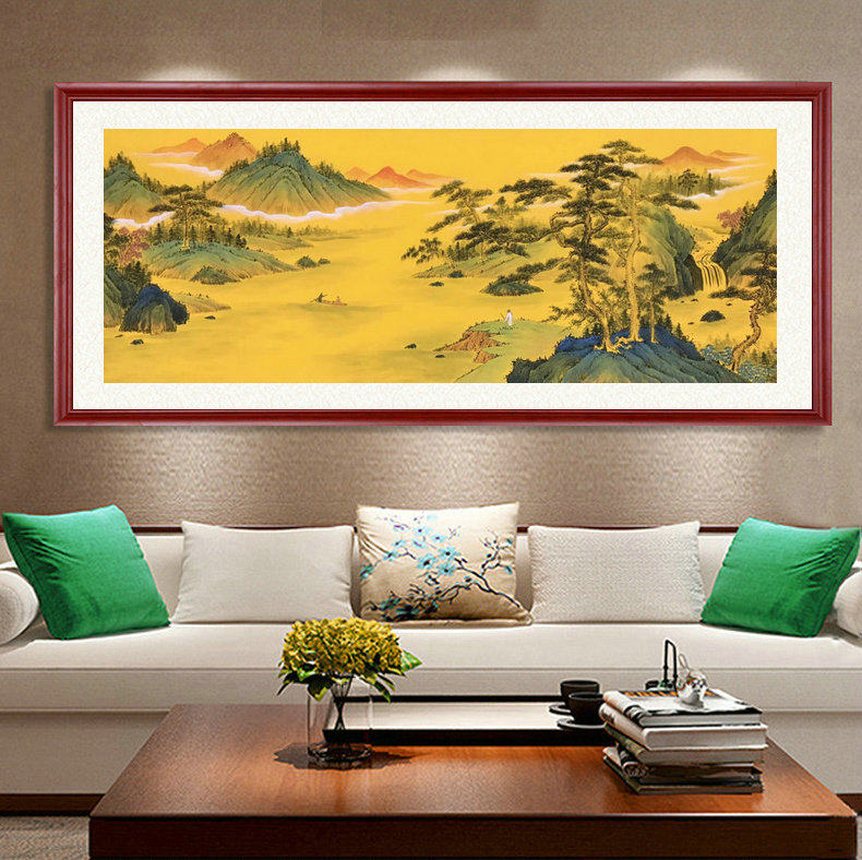 Pure Hand Painted Four Feet Imitation Ancient Landscape Country Painting Ink Blue Green Rice Paper Painting Core Office Living Room Dining Room Dining Hall Decoration Character Painting