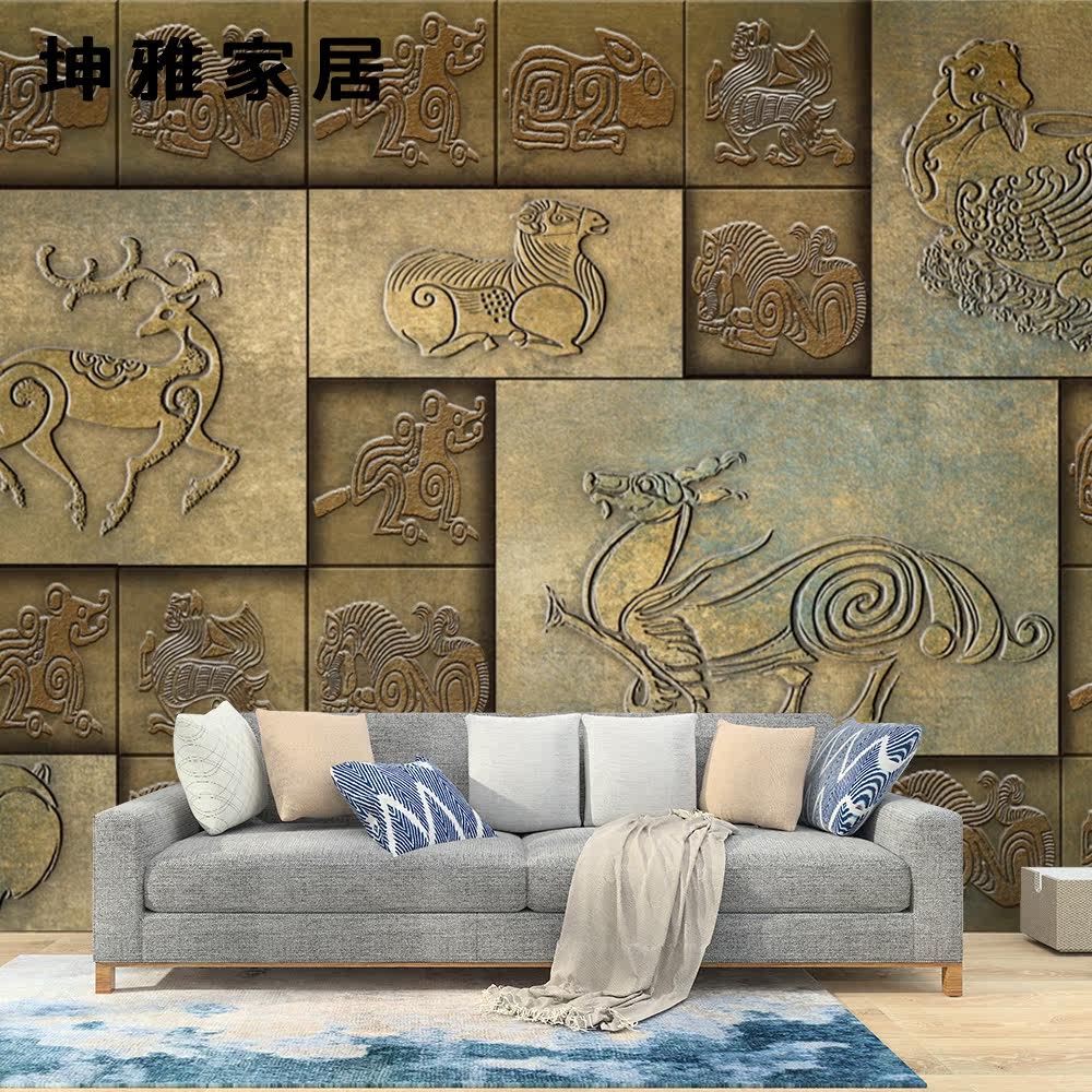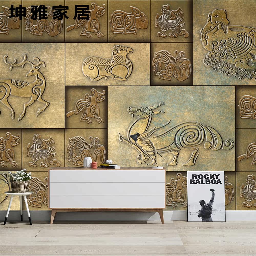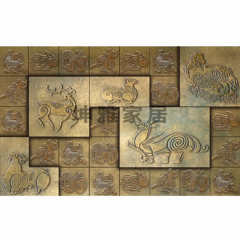 Bamboo wood fiber integrated wall plate Chinese bronze Xiaozhong TV Background wall panel decorative panel wall board