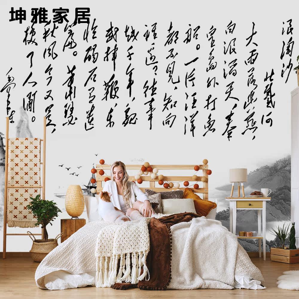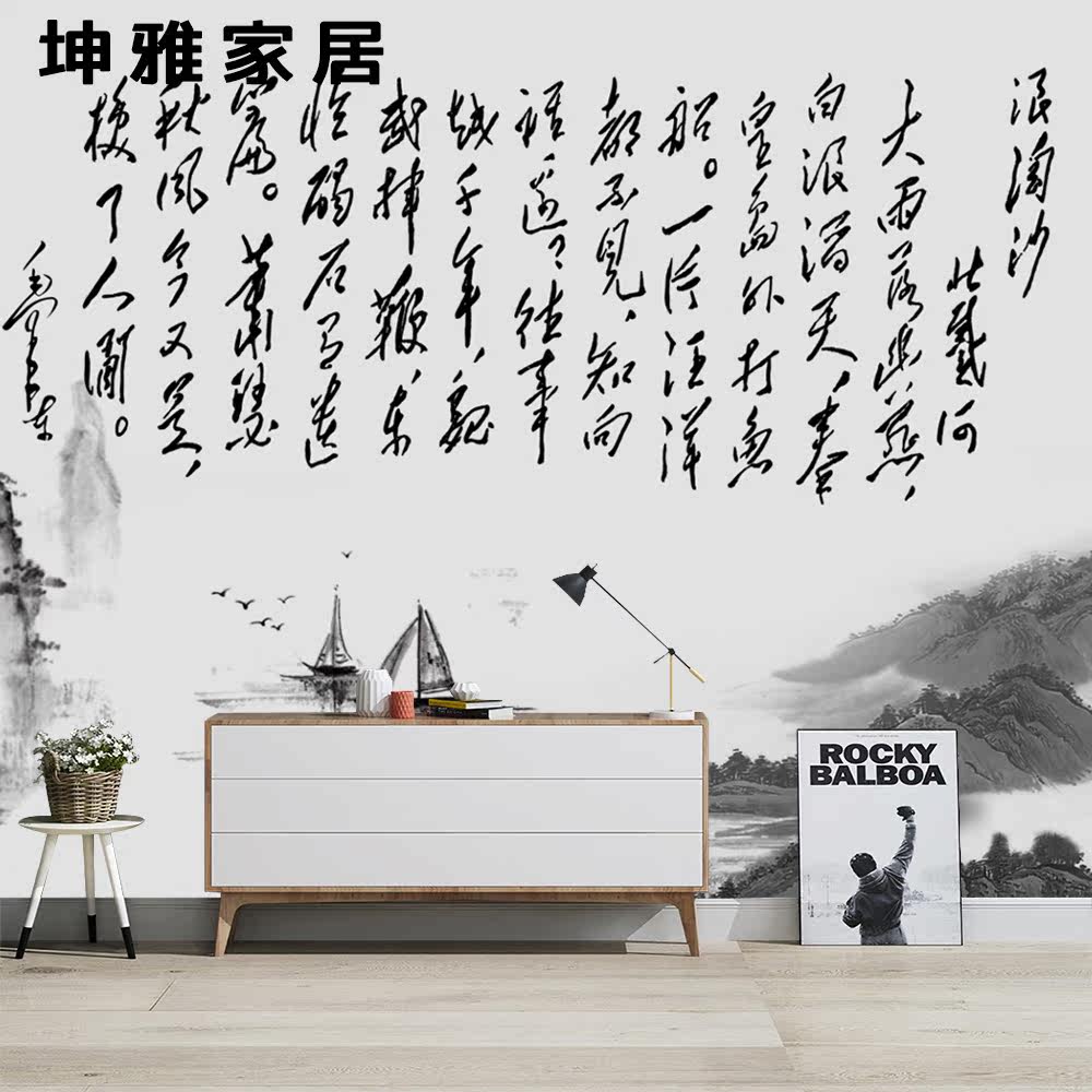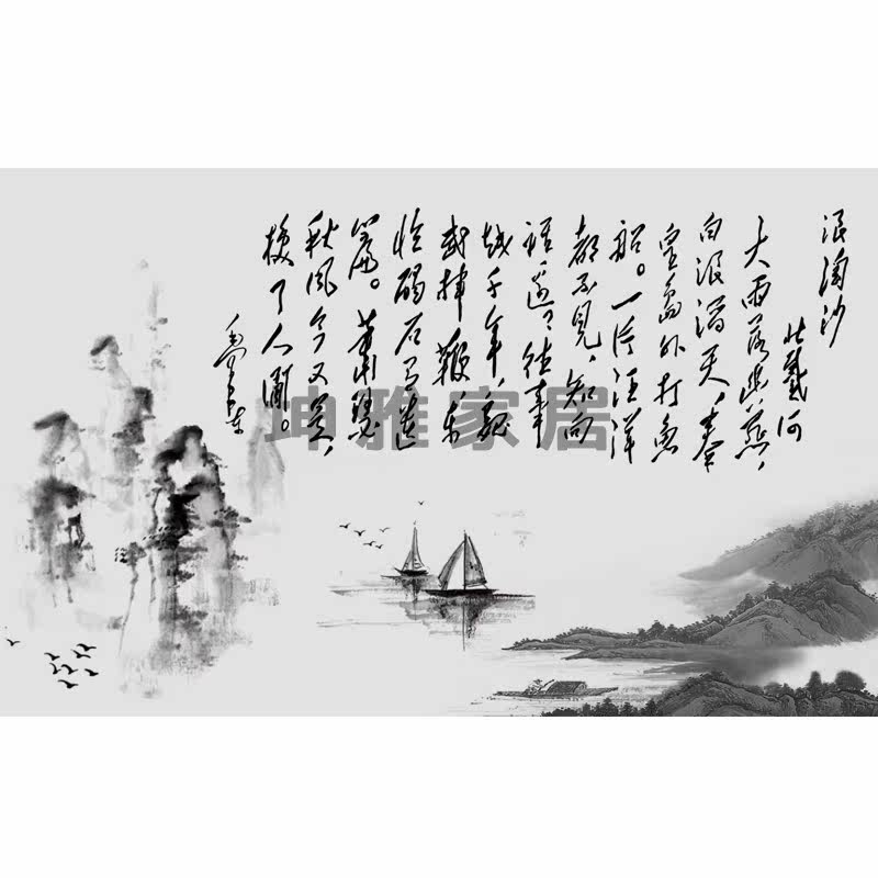 Bamboo and wood fiber integrated wall panel Chinese-style ink landscape, waves, sand, TV background wall panel, living room decorative wall panel