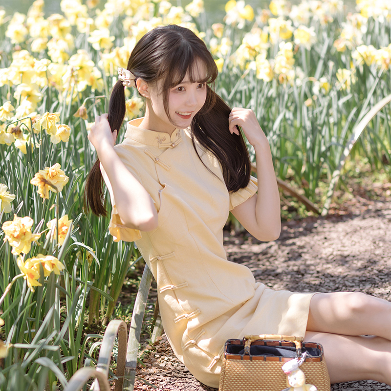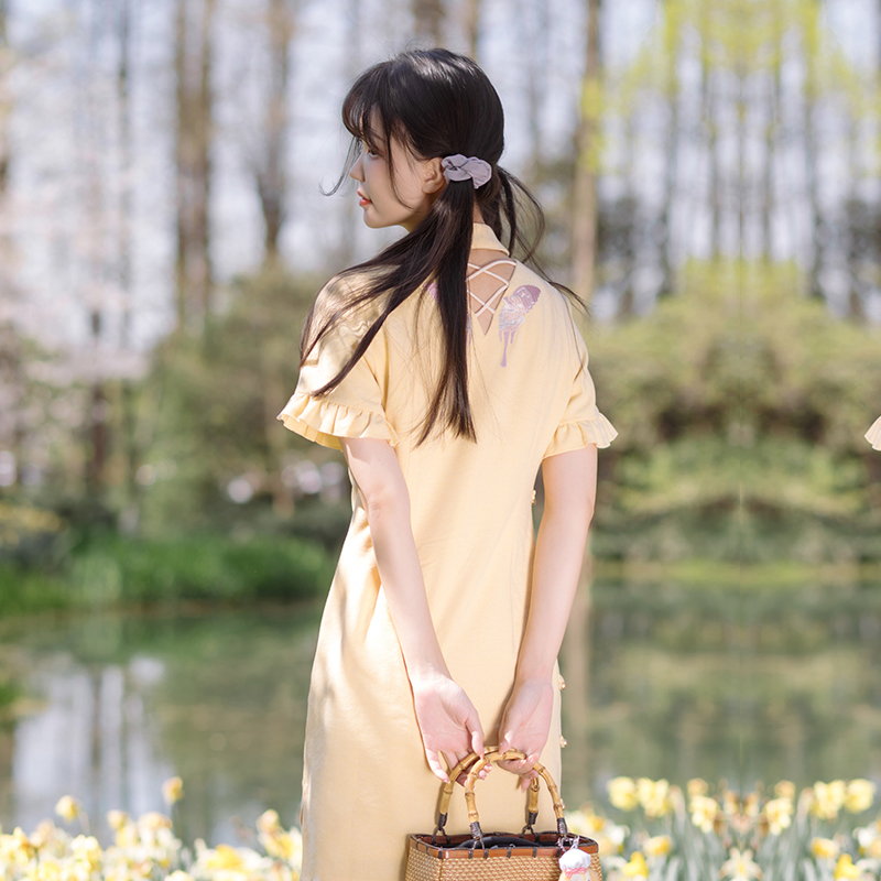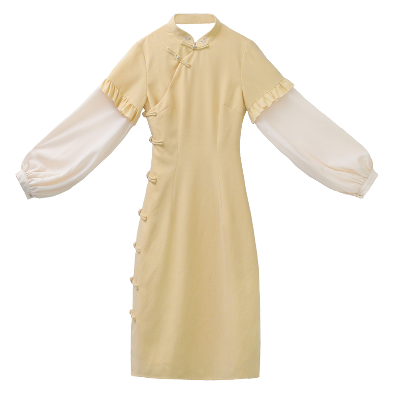 ChuanDai Time: Kite Mistake Reproduction Original Girl Cardigan Cheongsam Element Contrast Fake Two Dresses