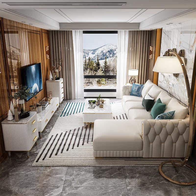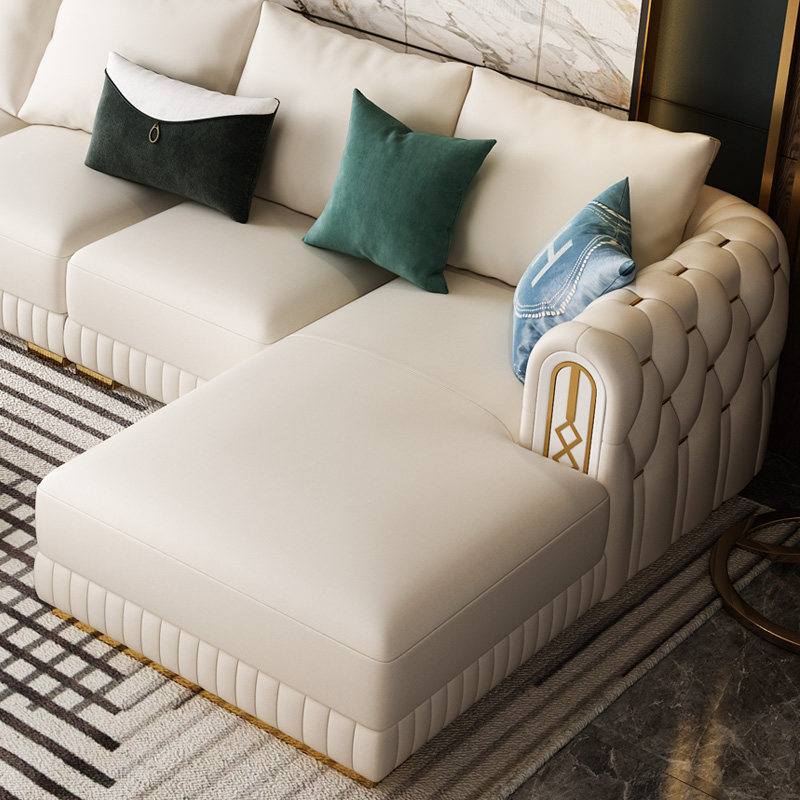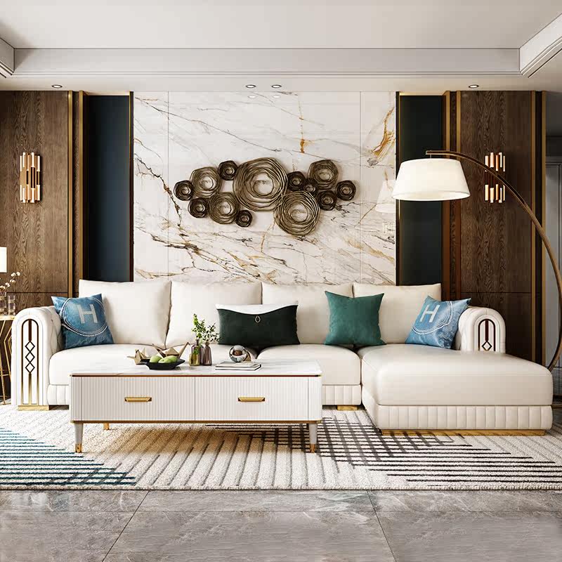 (New Product) Postmodern Light Luxury Sofa Simple Simulation Leather Small Apartment Living Room Furniture Corner Leather Art Sofa