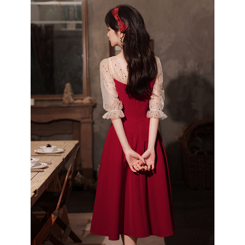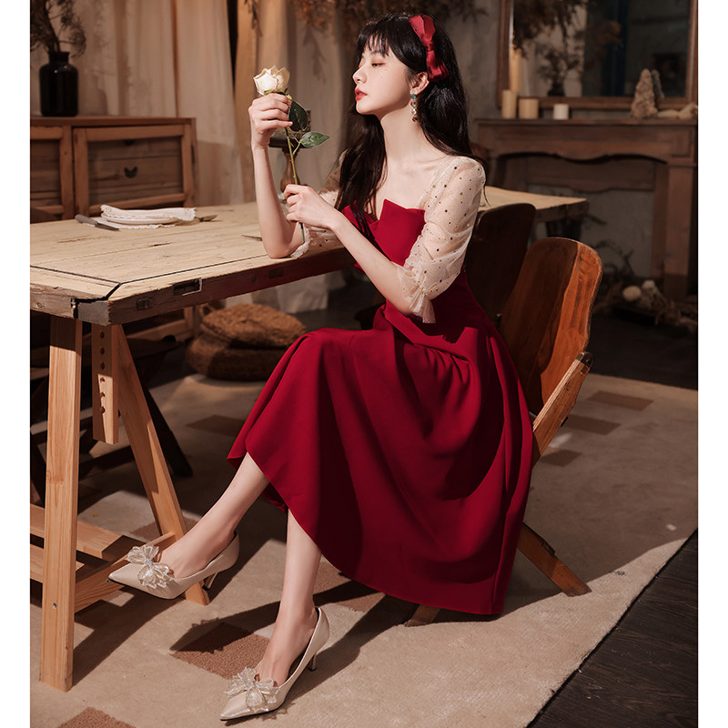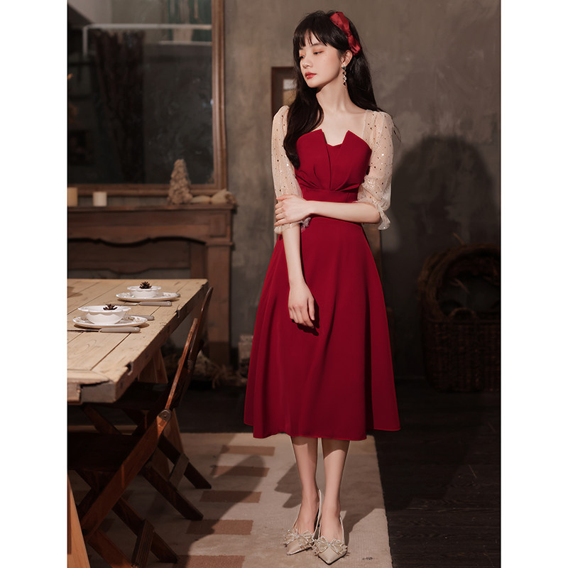 Bride toasting clothes small back door evening dress skirt women can usually wear summer engagement dress summer wine red