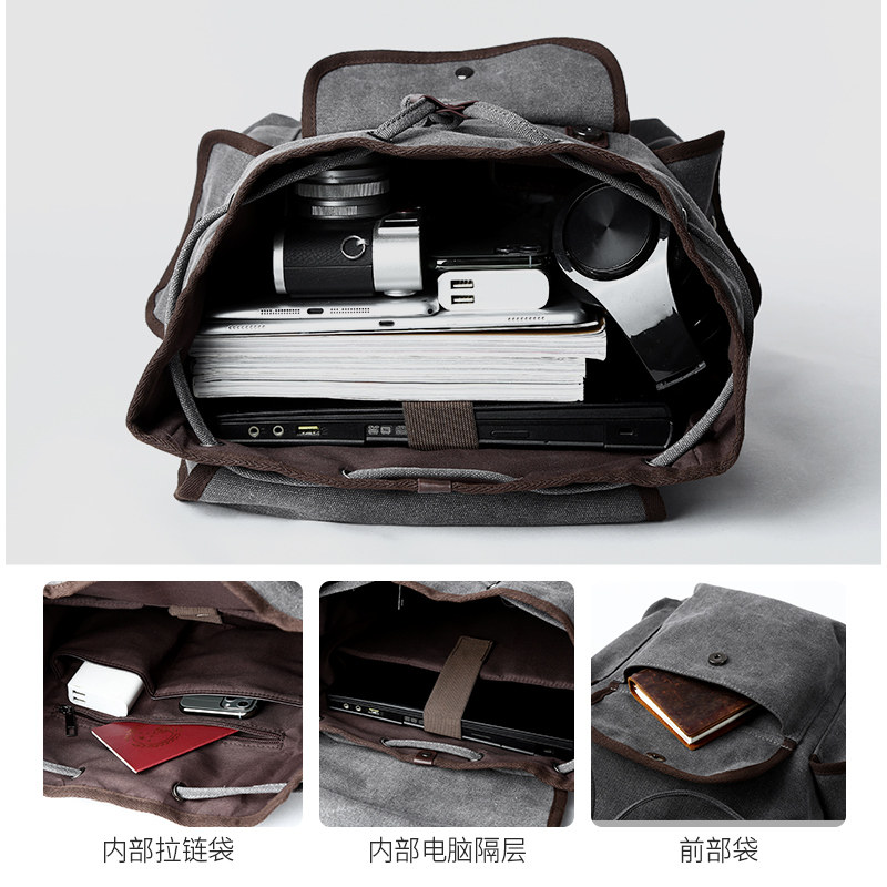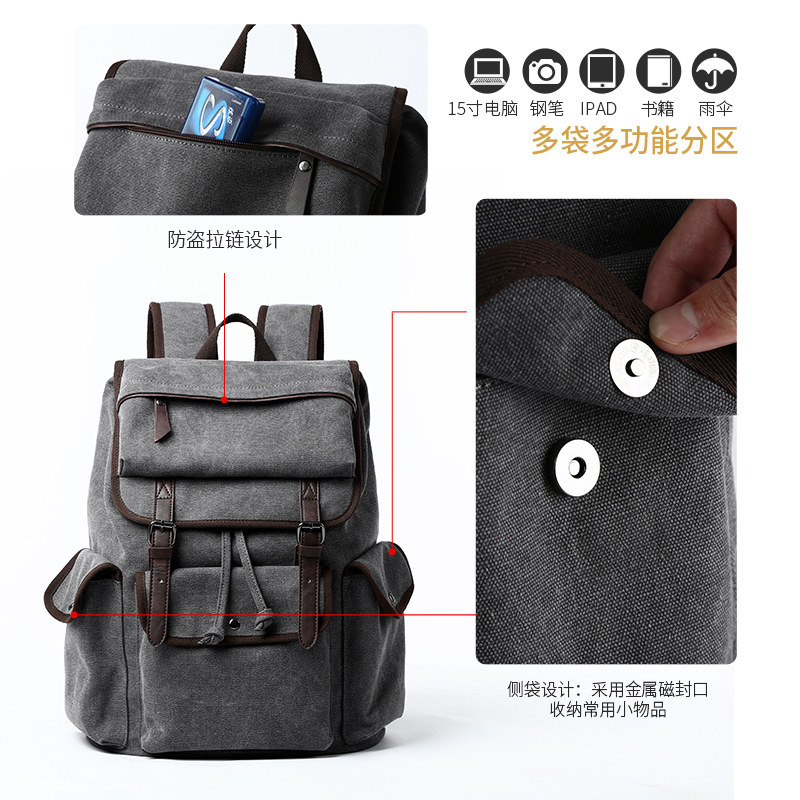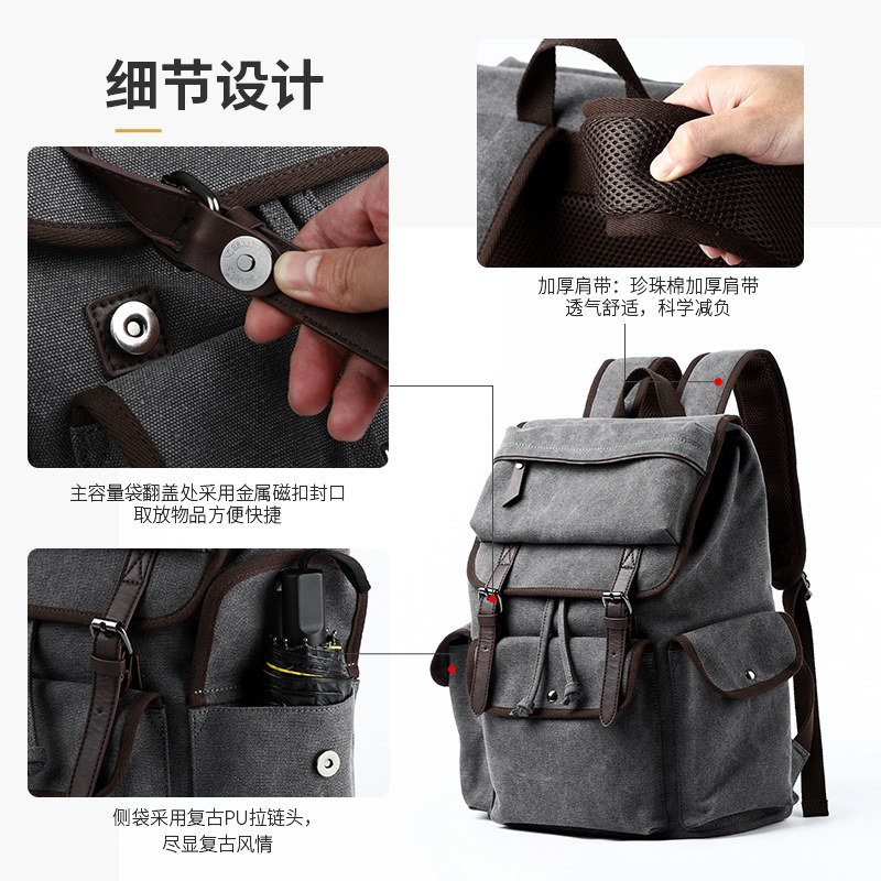 Hong Kong 2022 trendy retro double shoulder bag Male Canvas Shoulder Bag Light Travel Bag College Student Bag Computer Men Bag