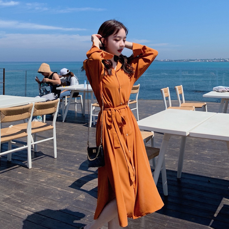 Avocado Green (Hong Kong-style retro chic waist art high-end first love tea break pear-shaped figure pure light ripe sweet small summer dress collocation) Orange (Hong Kong-style retro chic waist