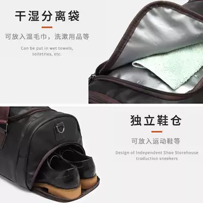 Svison Star Handheld Travel Bag Men's Large Capacity Luggage Leather Travel Bag Sports Fitness Bag Dry and Wet Separation
