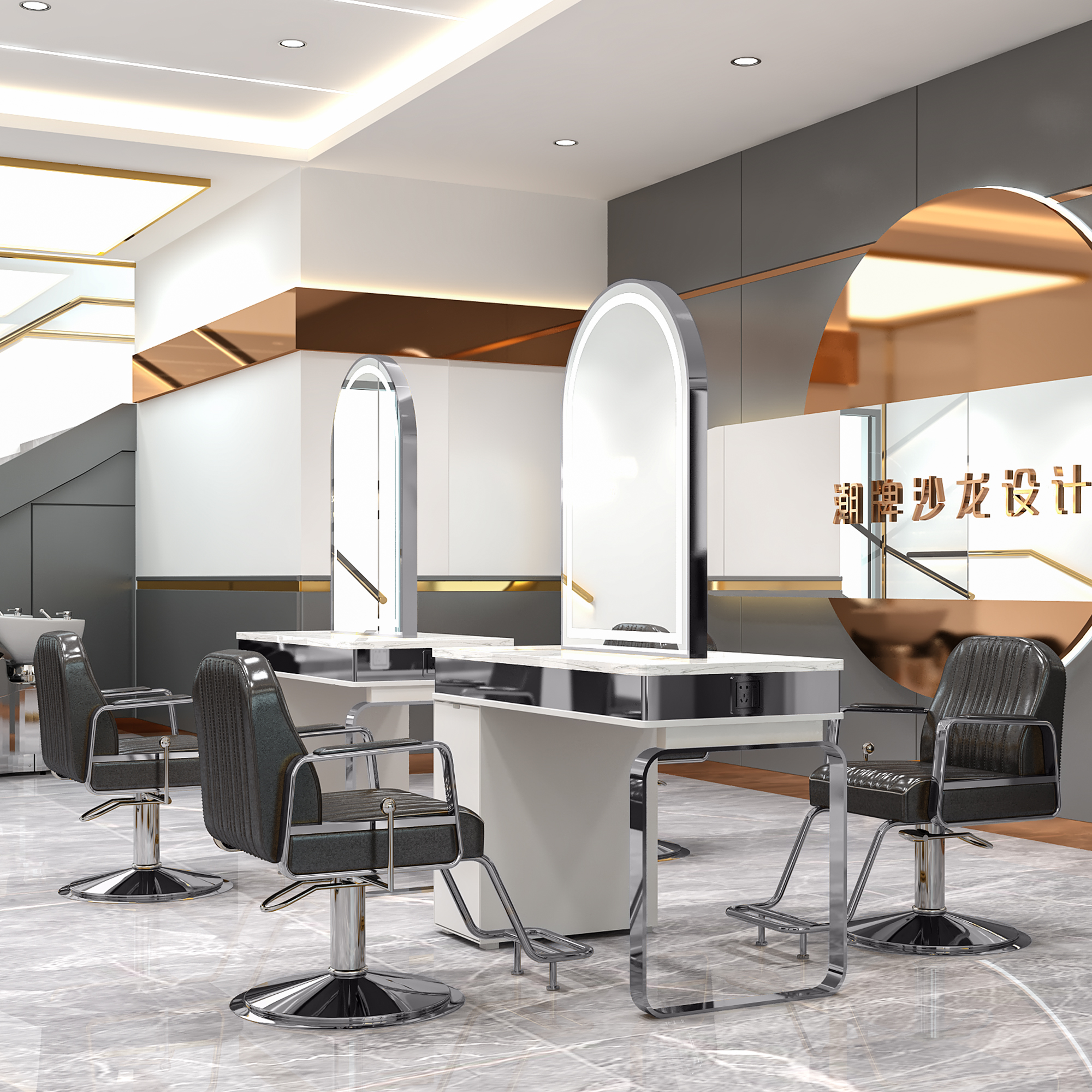 Trendy stainless steel marble hot dyeing table Net red mirror table Hair salon special hair salon Mirror hair cabinet one