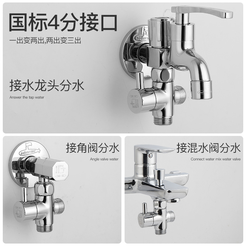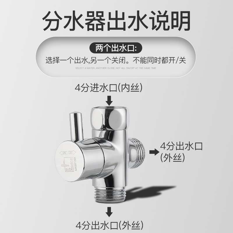 Submarine three-way water divider with switch one in two out shower faucet all copper one minute two water valve diverter