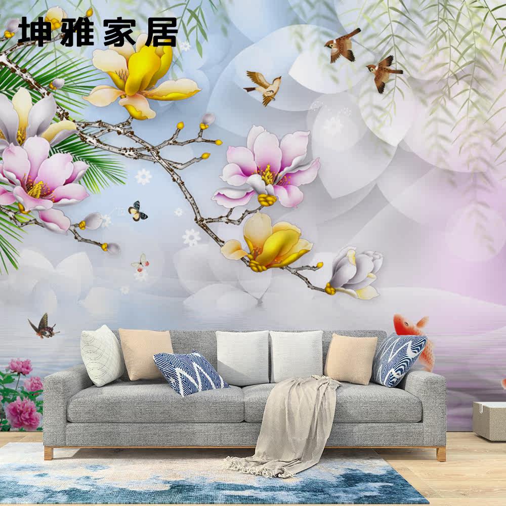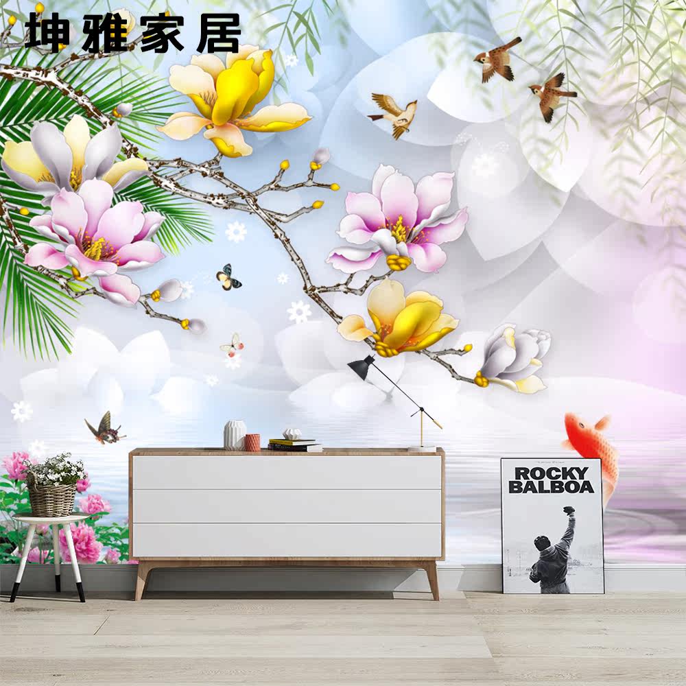 Bamboo wood fiber integrated wall panel Chinese style simple magnolia flowers and birds TV background wall panel living room decorative panel wall panel