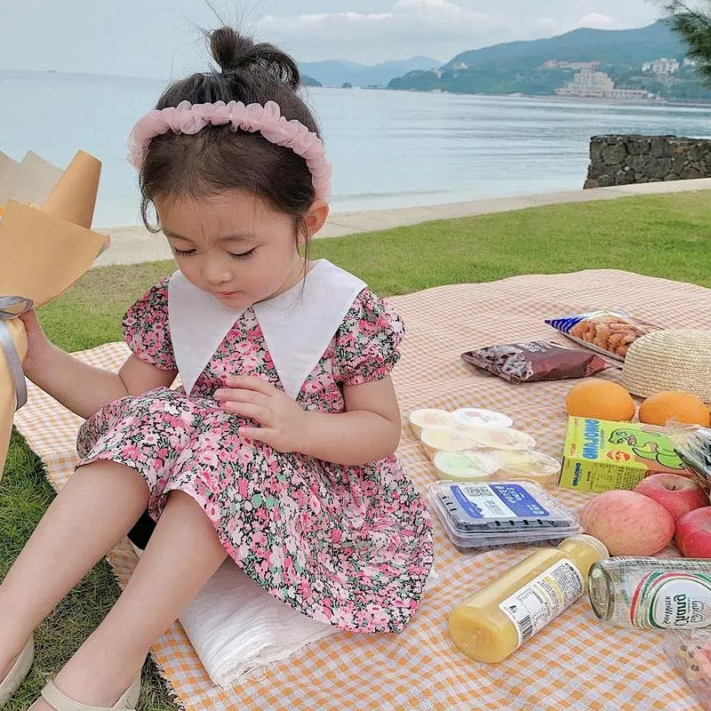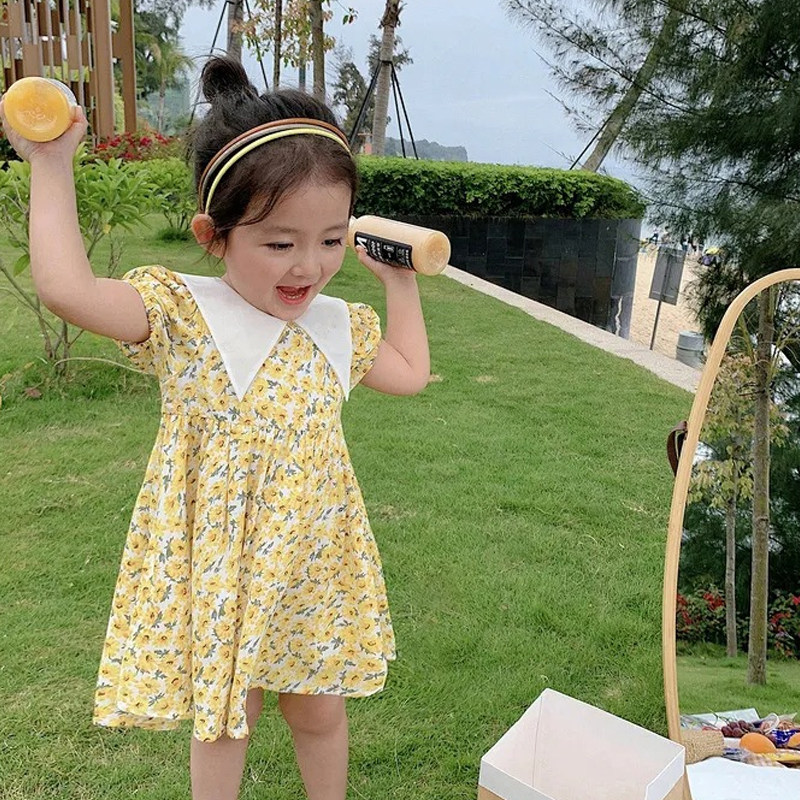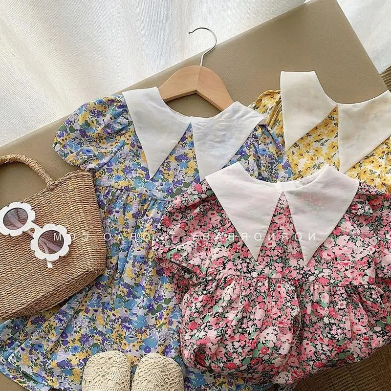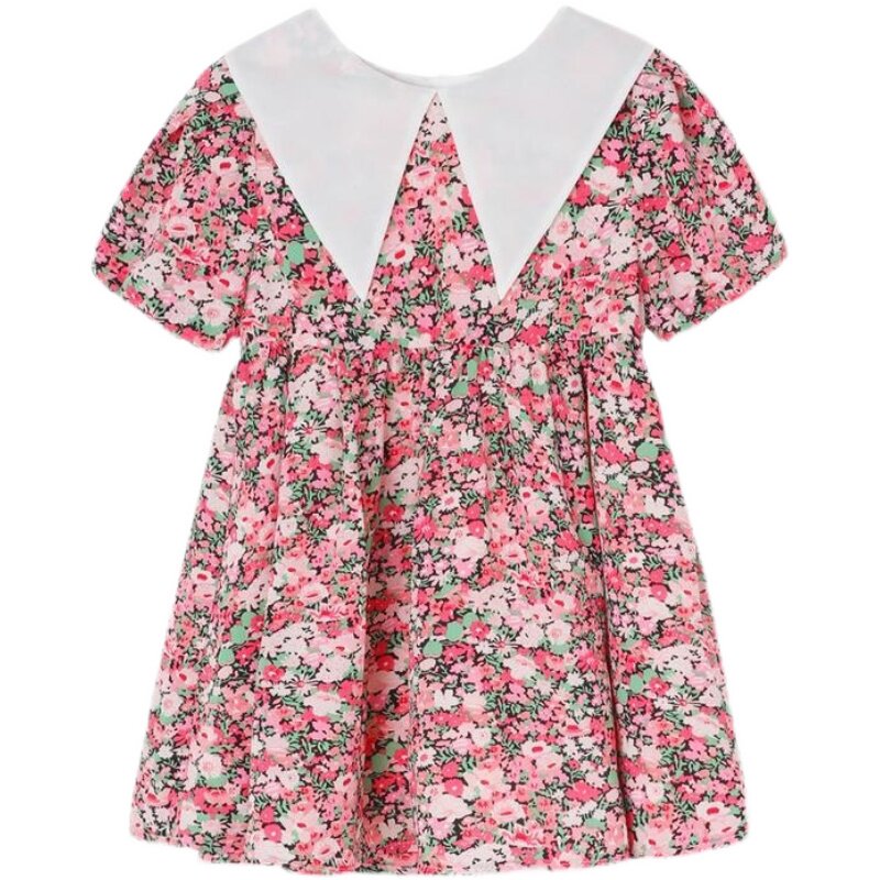 2022 new girl summer dress dress girl baby thin retro breathable sweet floral skirt princess skirt
