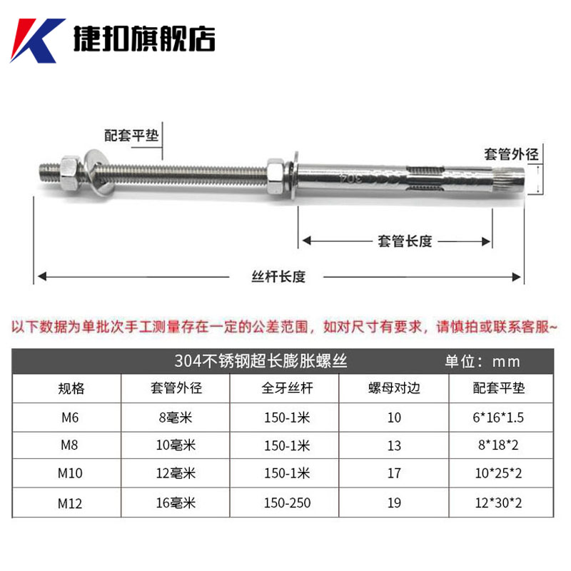 304 stainless steel extended expansion bolt ceiling pull explosion drying rack special explosion gong screw M6M8M10M12