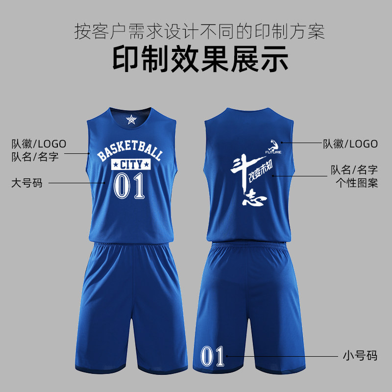 Customized T-shirt basketball clothing suit male printing student jersey customized sports quick-drying training competition team uniforms