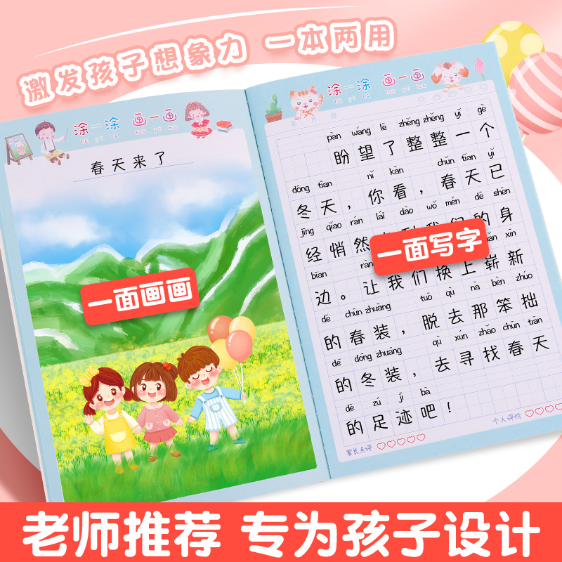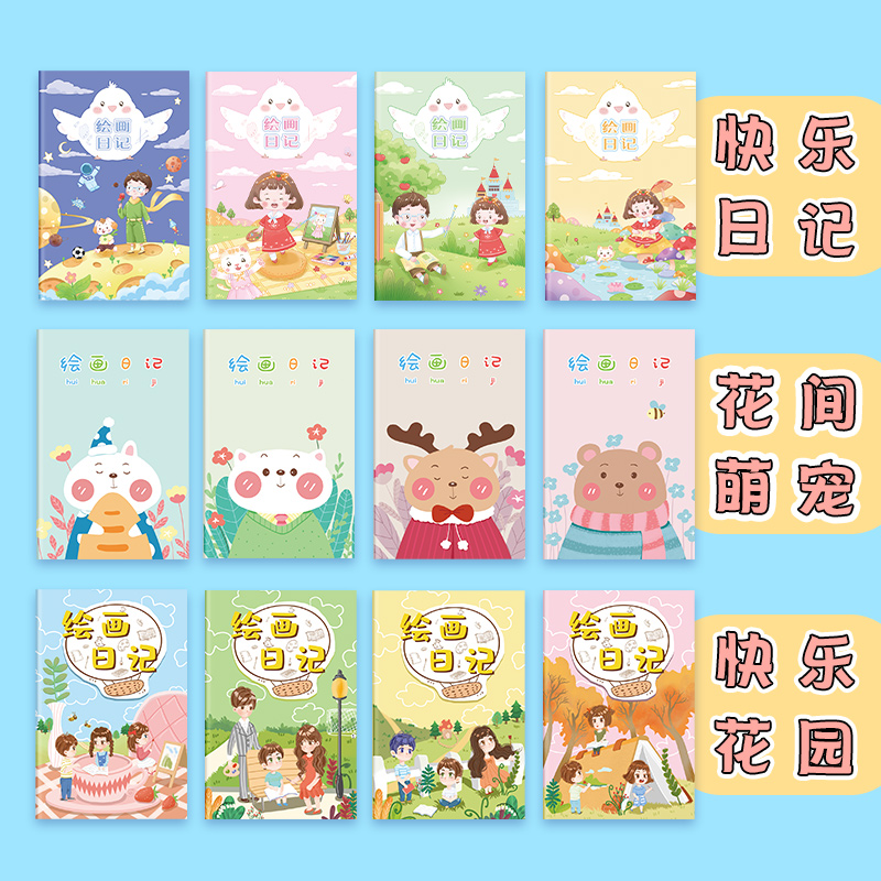 Drawing day note book children reading picture writing words toddlers one day one painting a first grade two-year-three-grade cartoon cute pinyin field character kindergarten start drawing picture writing a day note book