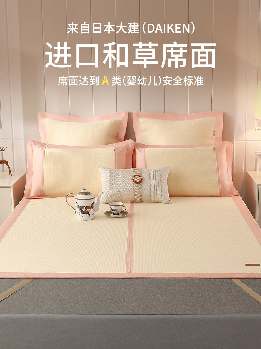 Huang Gulin and straw mat 1 8m bed three-piece set imported mat 1 5m foldable summer air-conditioning double mat