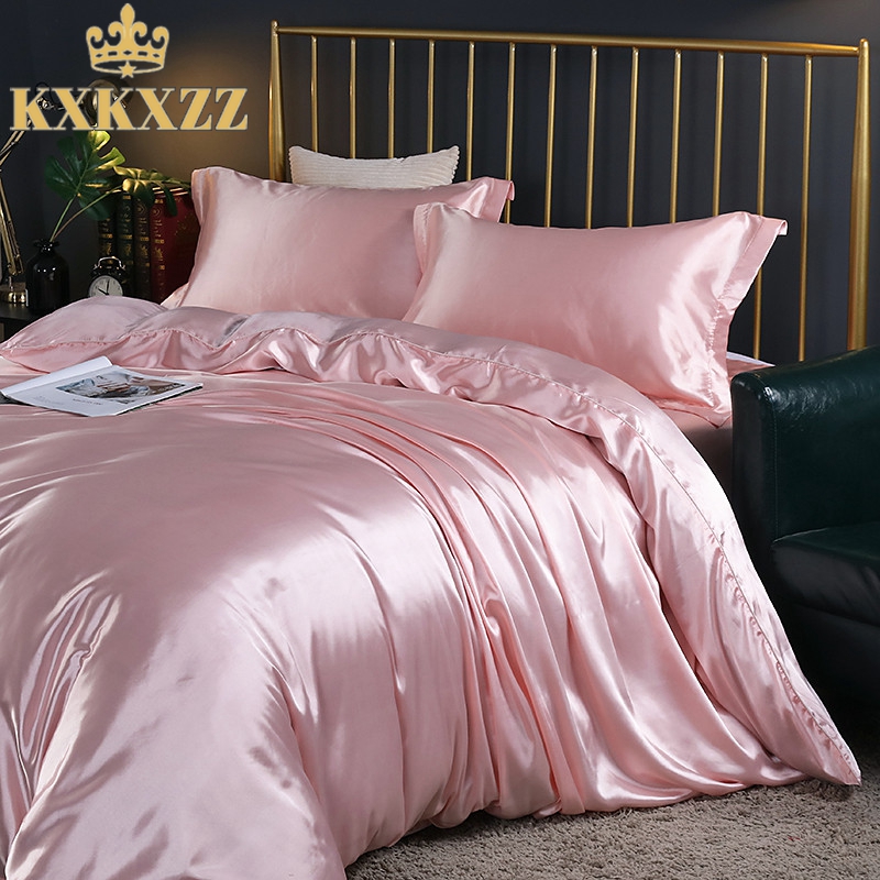 Summer mulberry silk cool quilt cover European silk four-piece ice silk satin sheet cover silky naked sleeping bedding