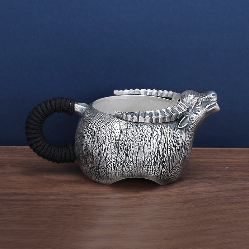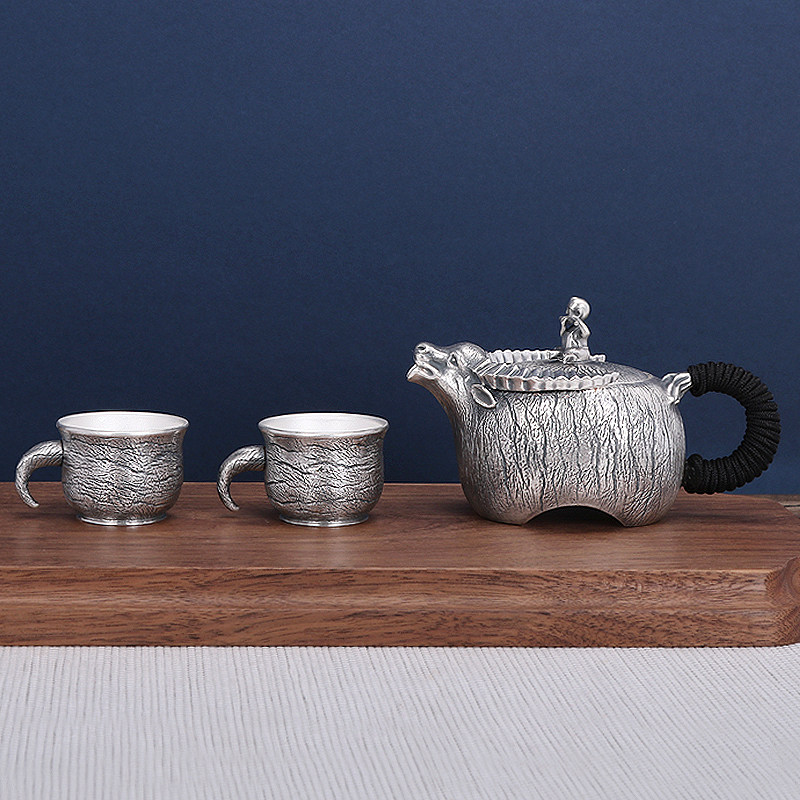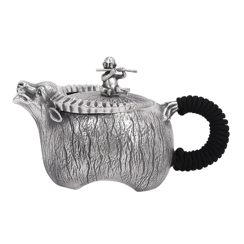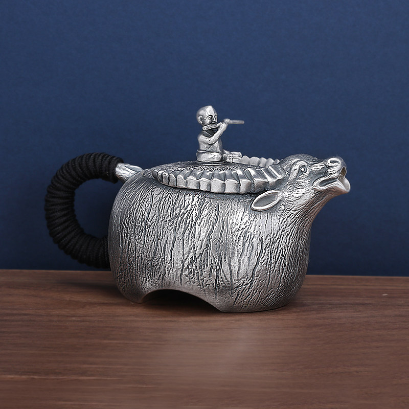 Tai'an Silver Industry Pure Silver 999 Silver Pot Pure Handmade Boy Riding Bull Tea Set Office Suit Bubble Teapot Kongfu Tea