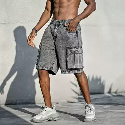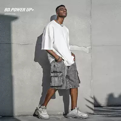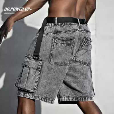 BD POWER UP vintage denim shorts men's Tide brand ins multi pocket tooling shorts men's loose large size
