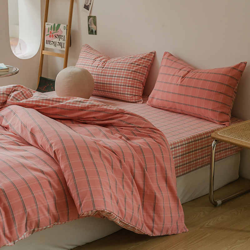 Non-printed good quality pure cotton four pieces full cotton three sets of brief wind checkered student Dormitory single double bed cover