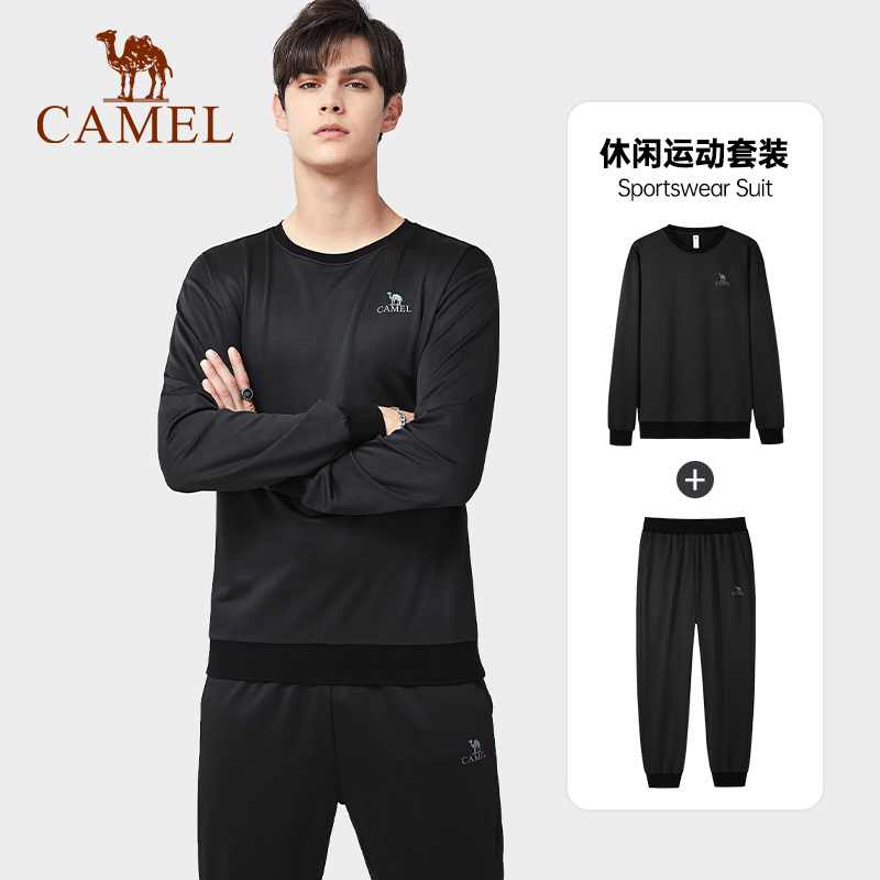 Camel sports suit 2022 spring new suit Guys sports loose round collar thick cotton T long pants wee pants tide