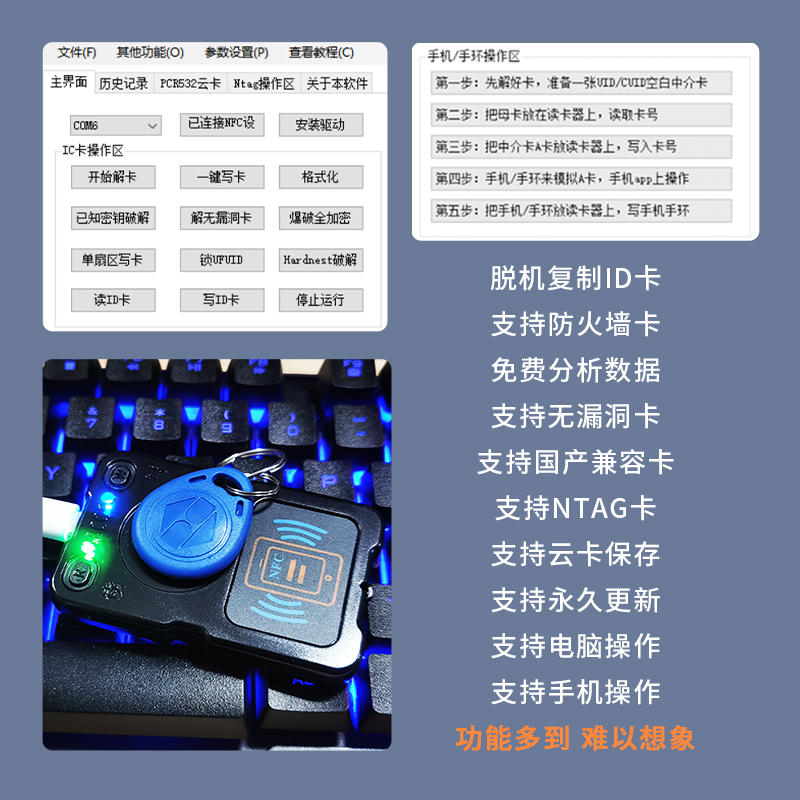 Bluetooth dual-band ICID access card reader decodes copy machine NFC analog encryption card cell elevator card