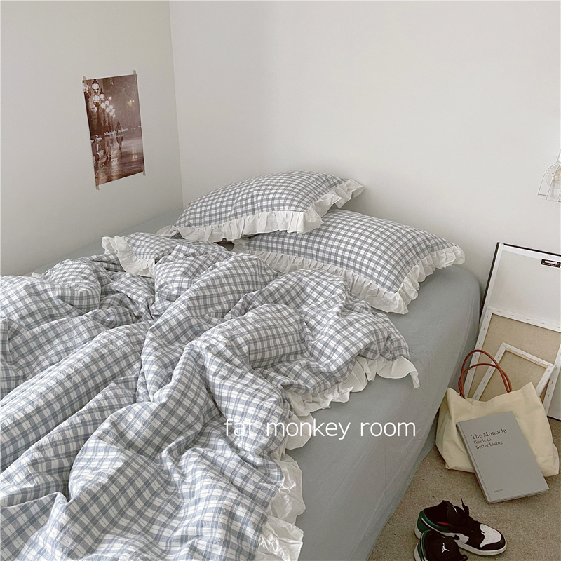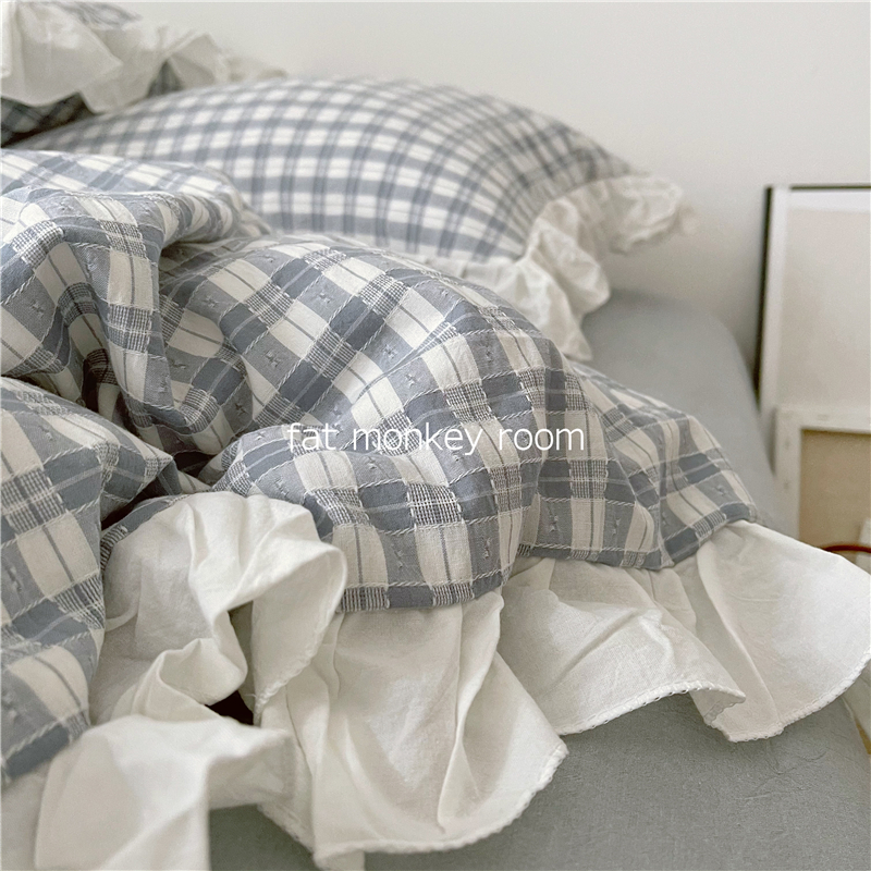 Medieval Herben Wind Ins Light Lavish Cotton Color Weave Jacquard Washed Cotton Lotus Leaf Side Bed Goods Four Pieces Princess Wind
